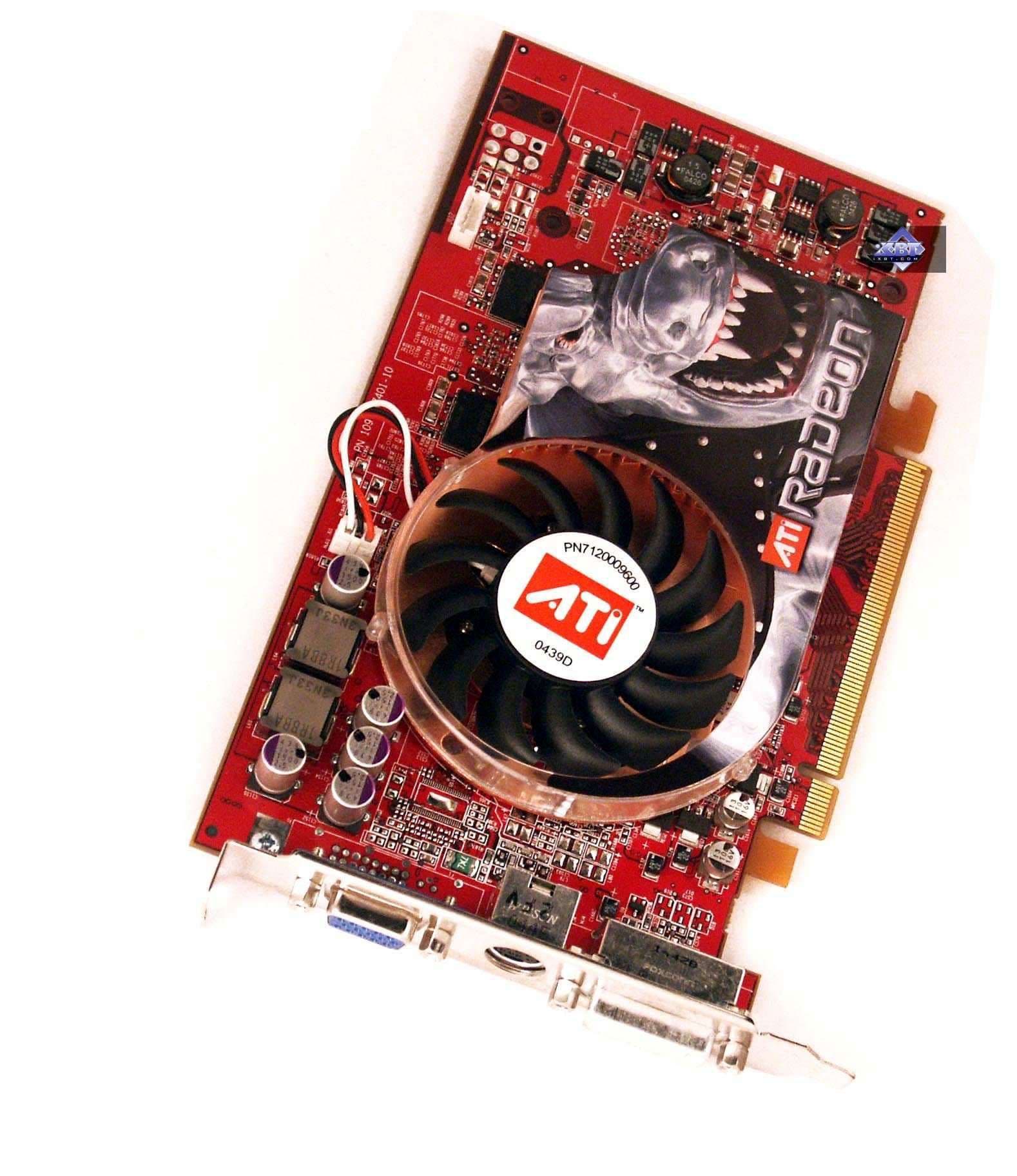 RADEON X800 (без суффиксов) — это младшая модель, ядро там почти такое же, только лишь число пиксельных конвейеров уменьшено до 12-ти (число вершинных — те же 6), и плата комплектуется 128-ю мегабайтами уже обычной DDR памяти с частотой работы 350 (700) МГц. Рекомендованная цена будет 200 долларов США.