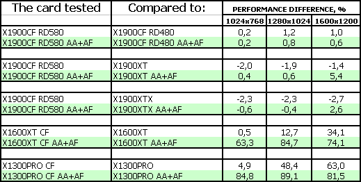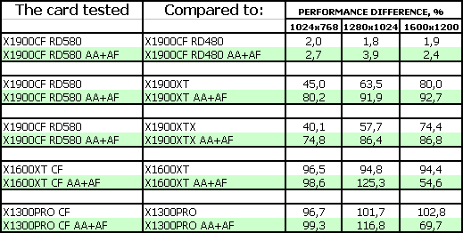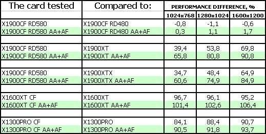 Как выяснилось, виной всему была сырость BIOS системной платы, и после получения новой версии и проведения повторного тестирования проблема с артефактами была устранена. Поэтому сегодня, пользуясь тем, что в лаборатории побывала и мастер-карта X1900 XT CFE, мы расскажем и об окончательных результатах тестирования CF на RD580.