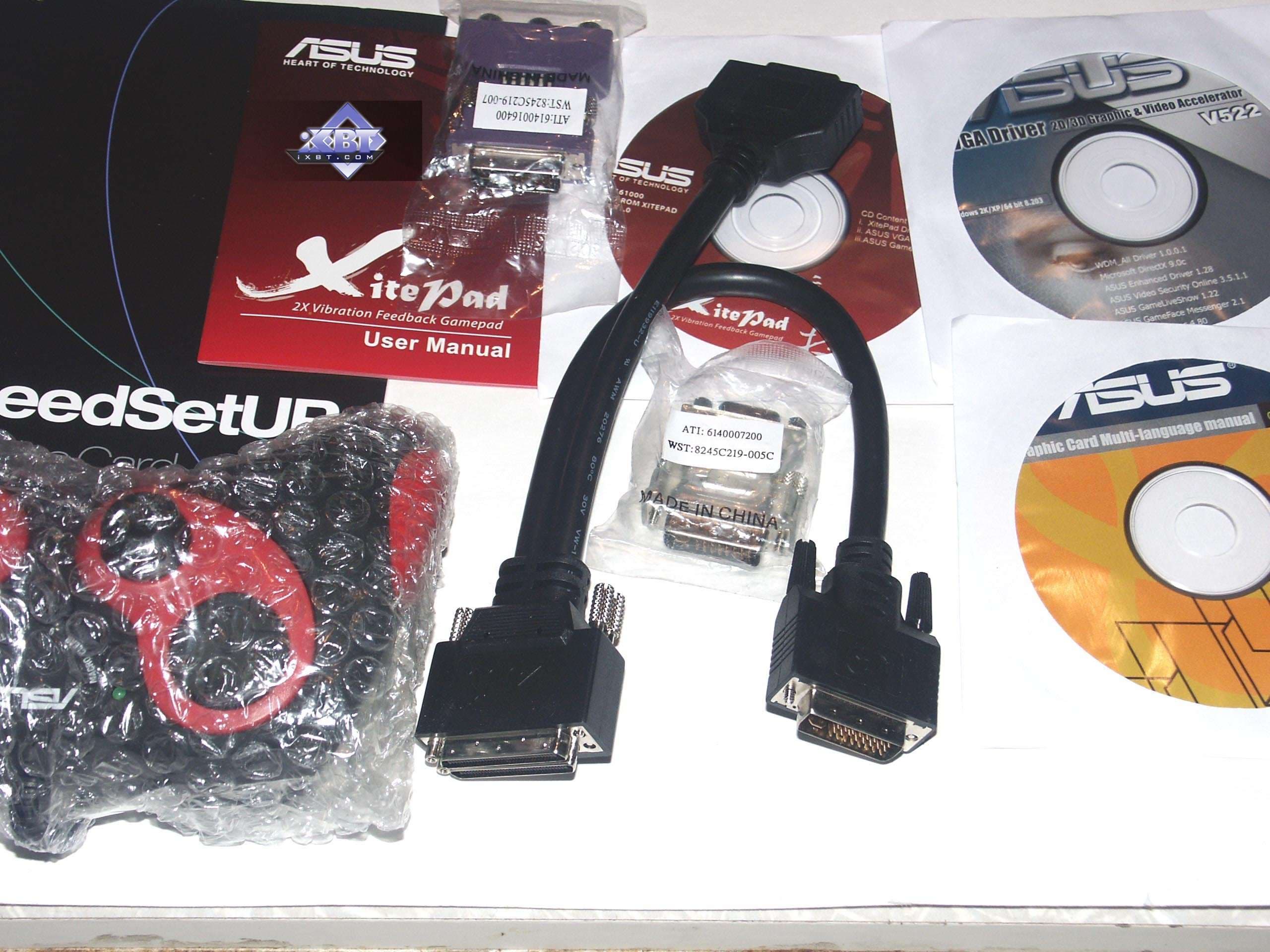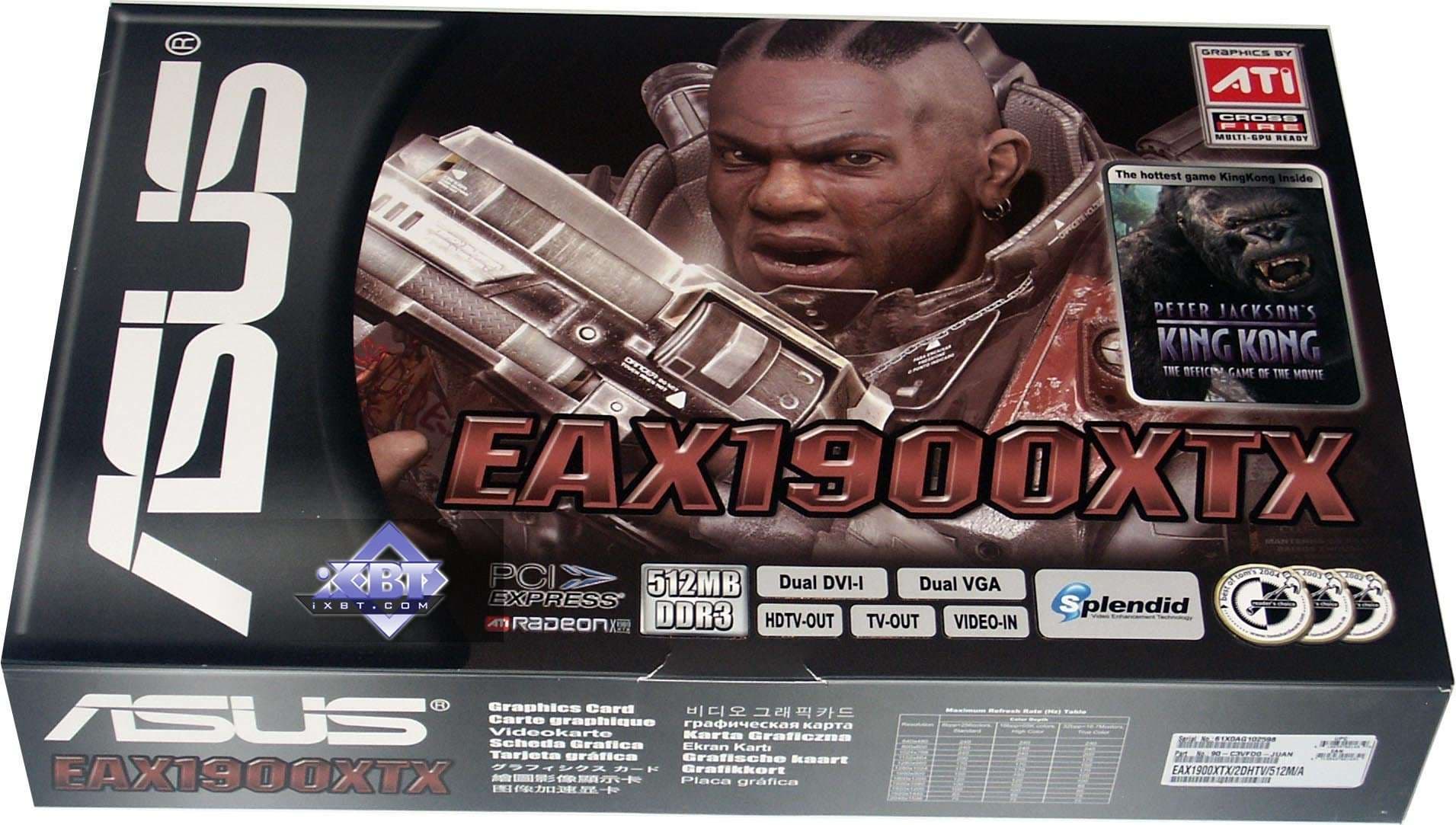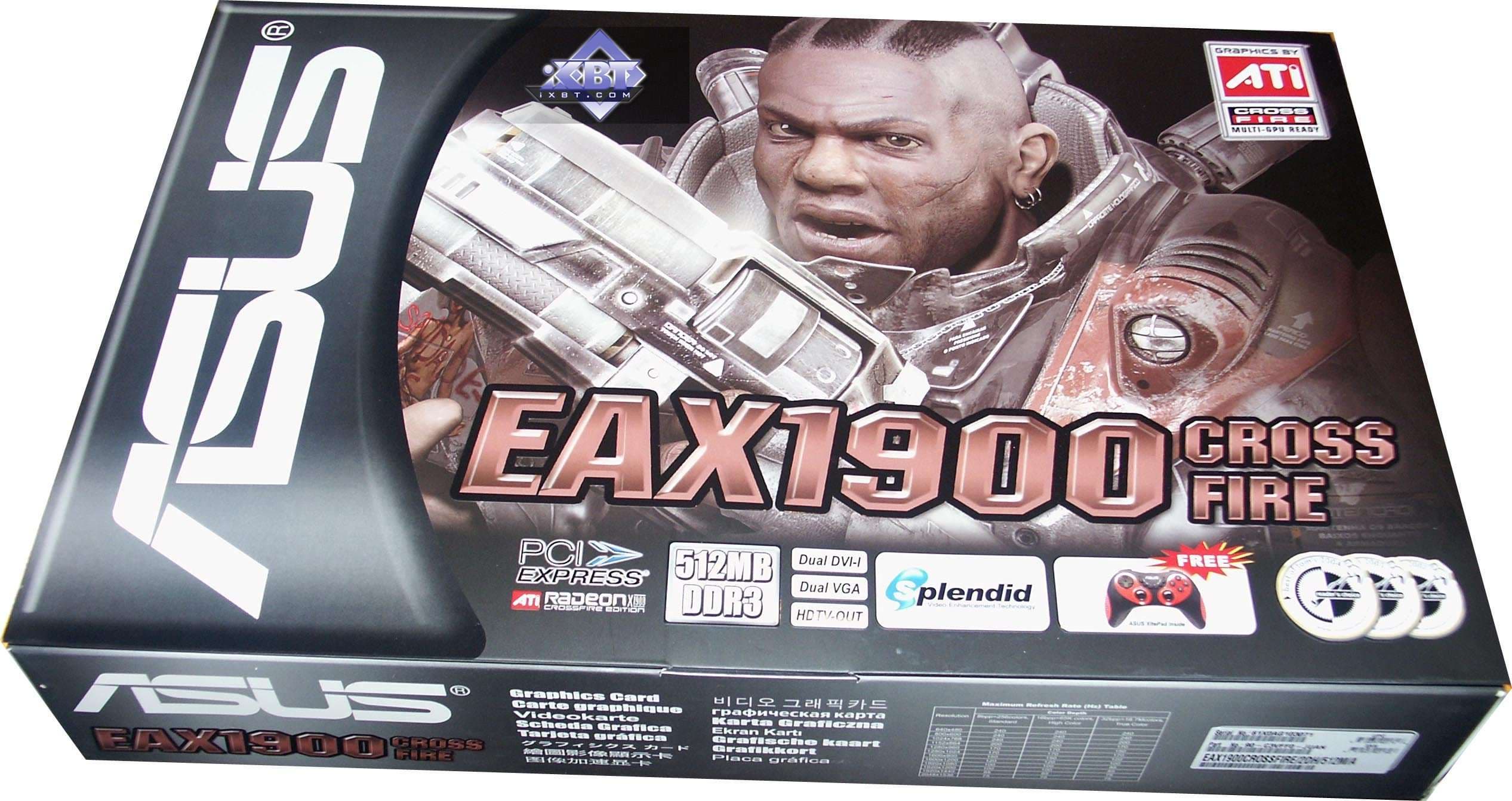 - ASUS EAX1900XT CrossFire (RADEON X1900 XT CrossFire Edition) 512MB PCI-E — аналогичный стандартный продукт. Комплект поставки еще более интересный, игровой манипулятор весьма симпатичный.