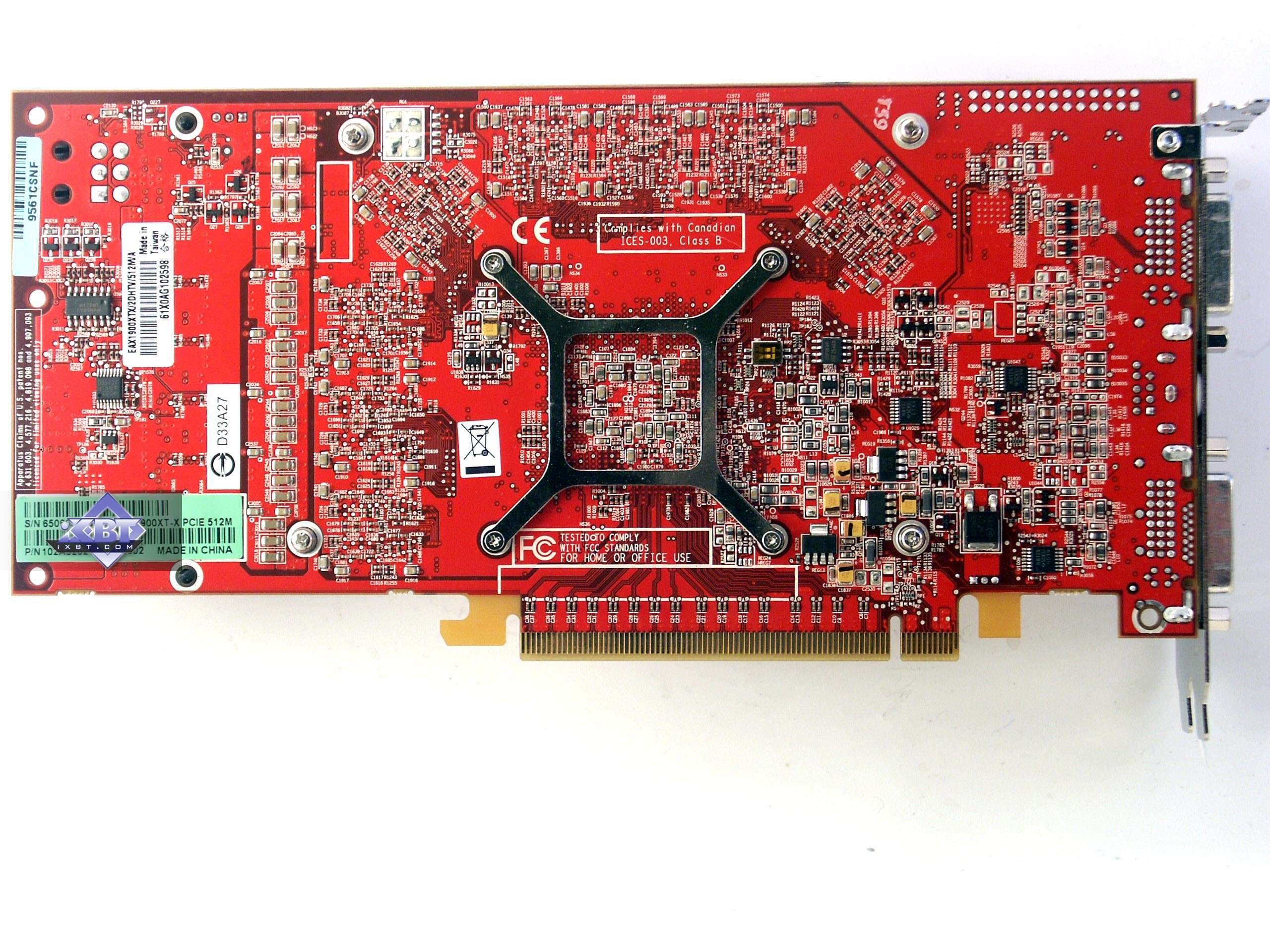 Как я уже говорил, от самого ASUS на картах только наклейки на кулере. Все остальное — это чистый reference. Учитывая, что на форумах постоянно задают вопрос: какая карта лучше X1900 XTX — от Sapphire, HIS и т.д.; я еще раз подчеркну, что все X1900 XT/XTX/CFE выпускаются самой компанией ATI (вернее, изготавливаются по ее заказу на сторонних фабриках), и поэтому они ВСЕ ОДИНАКОВЫЕ!