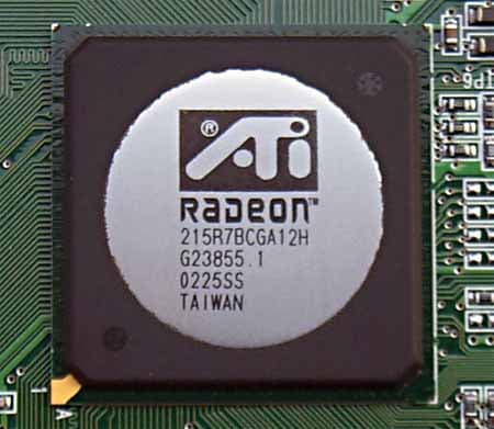 Ну а под радиатором можно найти и сам чип, на нем, кстати, нет никакой маркировки, означающей, что это именно 9000-й RADEON