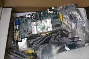| На всех видеокартах установлены модули памяти от Hynix со временем выборки 3.3 ns, что соответствует частоте работы примерно 300 (600) МГц, но память работает на частоте 275 (550) МГц, как и положено для таких карт. GPU функционирует также на обычной для RADEON 9000 Pro частоте 275 МГц. | ![]() |