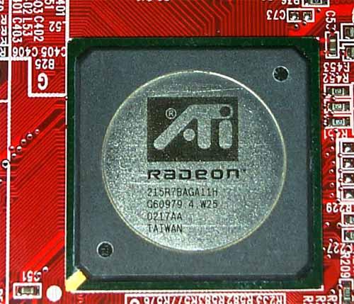 Я уже ранее говорил, что размеры GPU меньше, чем у RADEON 8500. Если снять кулер, то мы можем лицезреть этот процессор: