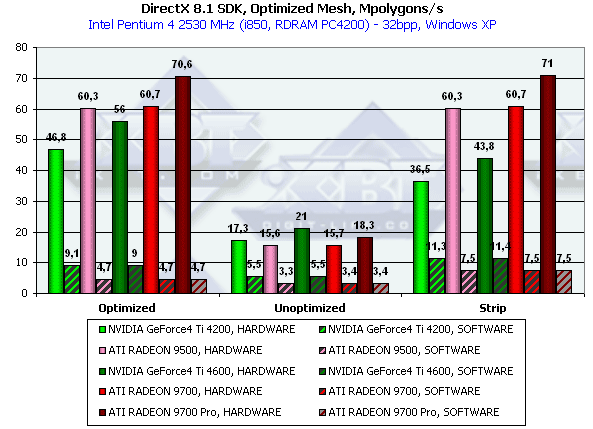 Картина дублирует полученные нами в тестах из DX8 SDK результаты.