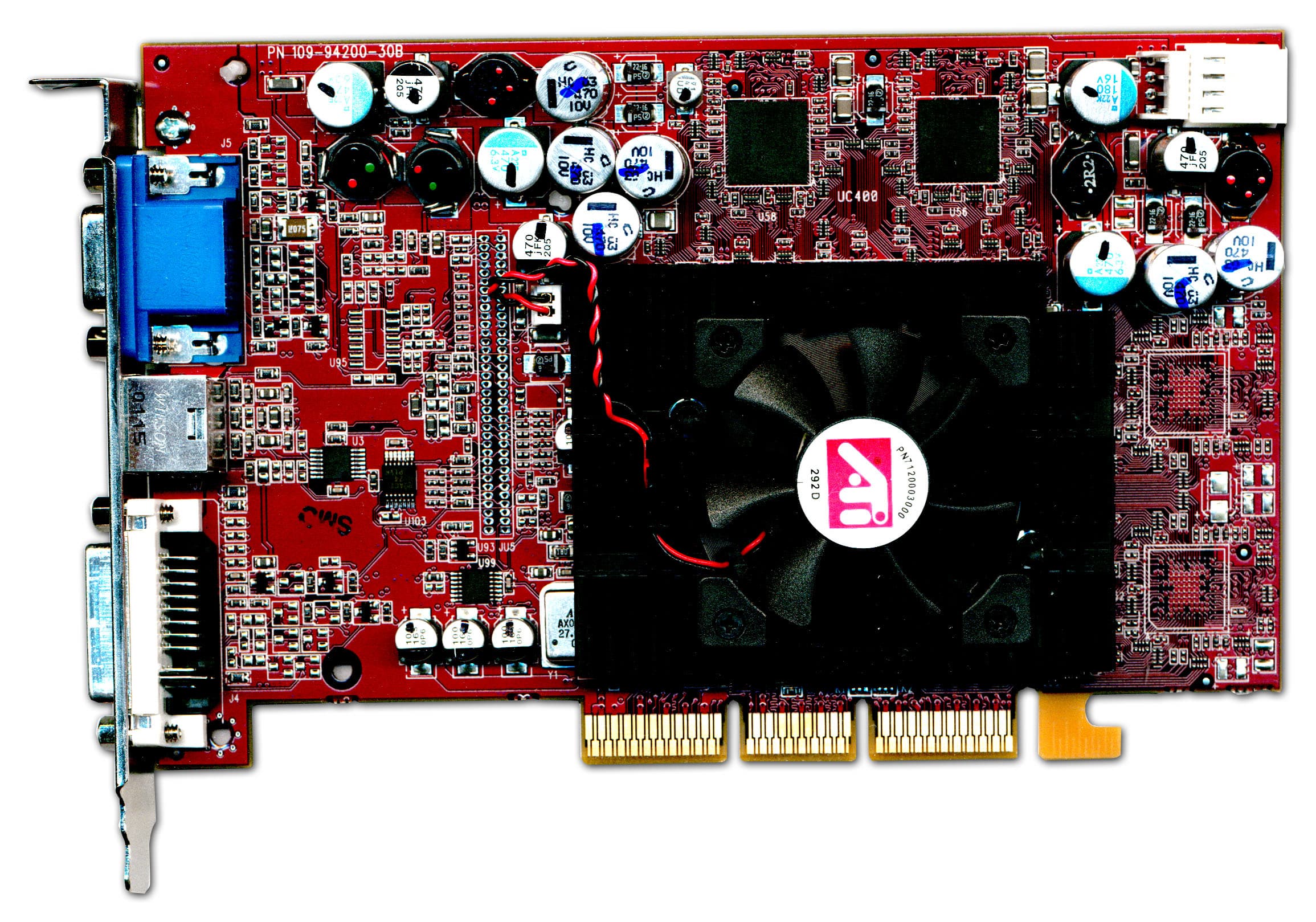 - RADEON 9700 275 МГц чип (8 конвейеров), 128 Мбайт 270 МГц (DDR 540) 256-битной локальной памяти;