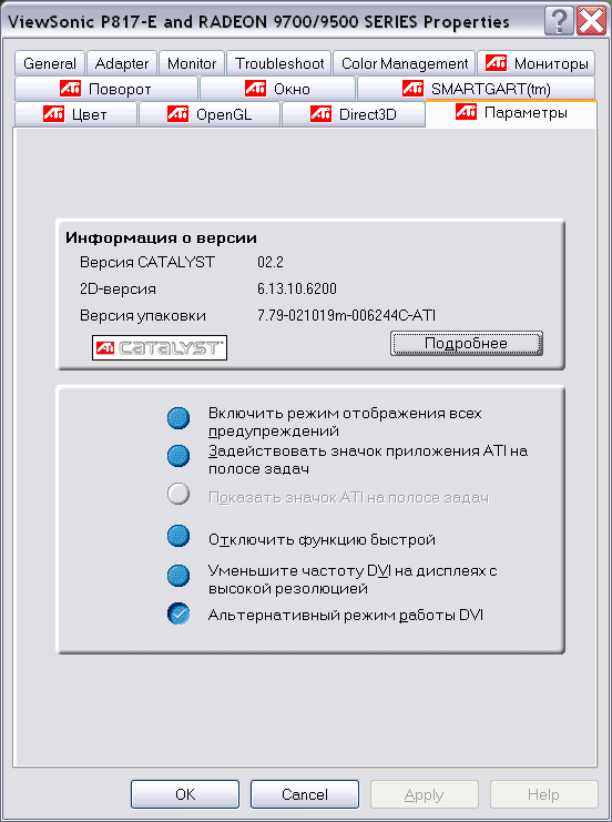 Замечу, что последняя версия (3.32) PowerStrip уже умеет работать с RADEON 9500. А вот с разгоном RADEON 9700 проблема. Еше ранее я намекнул на то, что для выпуска таких карт используются PCB от RADEON 9700 Pro. Разумеется, компания ATI заинтересована в том, чтобы партнеры покупали RADEON 9700 Pro и RADEON 9700 по разным ценам, и чтобы те не могли купить последний, разогнать и продавать как RADEON 9700 Pro.