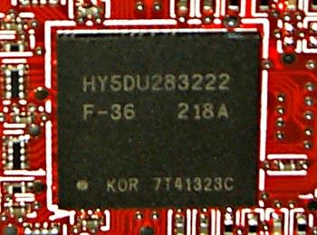 | Обе карты имеет интерфейс AGP x4/x8, 64 МБ памяти DDR SDRAM, размещенной в 4-х микросхемах на обеих сторонах PCB. На картах установлены микросхемы памяти Hynix марки HY5DU283222 F-36 форм-фактора BGA. Максимальная частота работы 275 (550) МГц. По умолчанию память работает на частоте 270 (540) МГц, а чип на 275 МГц. И это подтверждается утилитой PowerStrip. | ![]() |