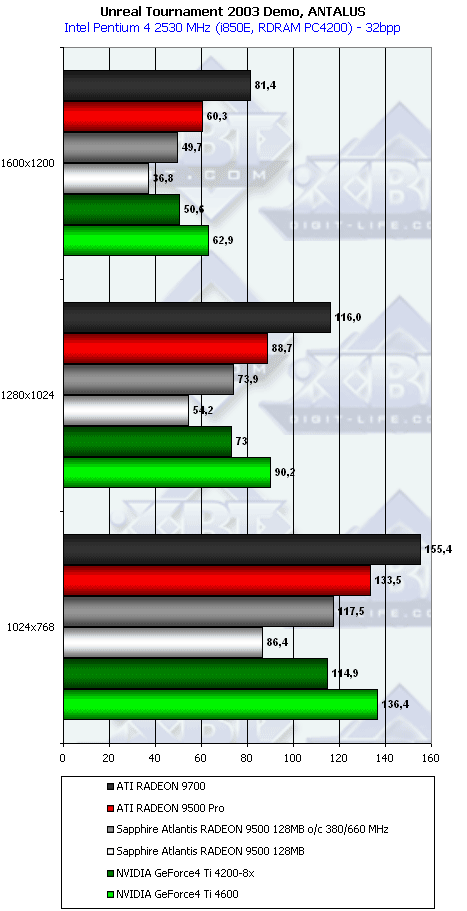 - Обзор Hercules 3D Prophet 9700 Pro 128MB производительность нового драйвера CATALYST 2.3 в 3DMark2001 SE, бенчмарки Unreal Tournament 2003 DEMO final release
