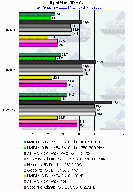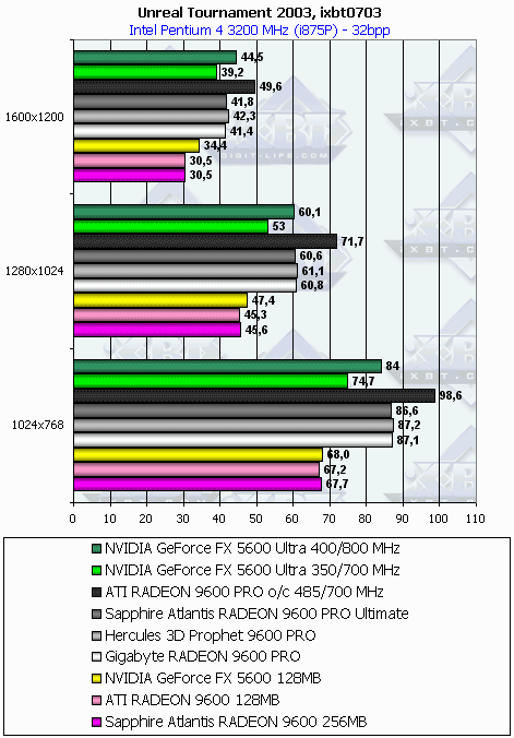 Надо же, прямо как все на один лад. RADEON 9600 PRO и тут в выигрыше.