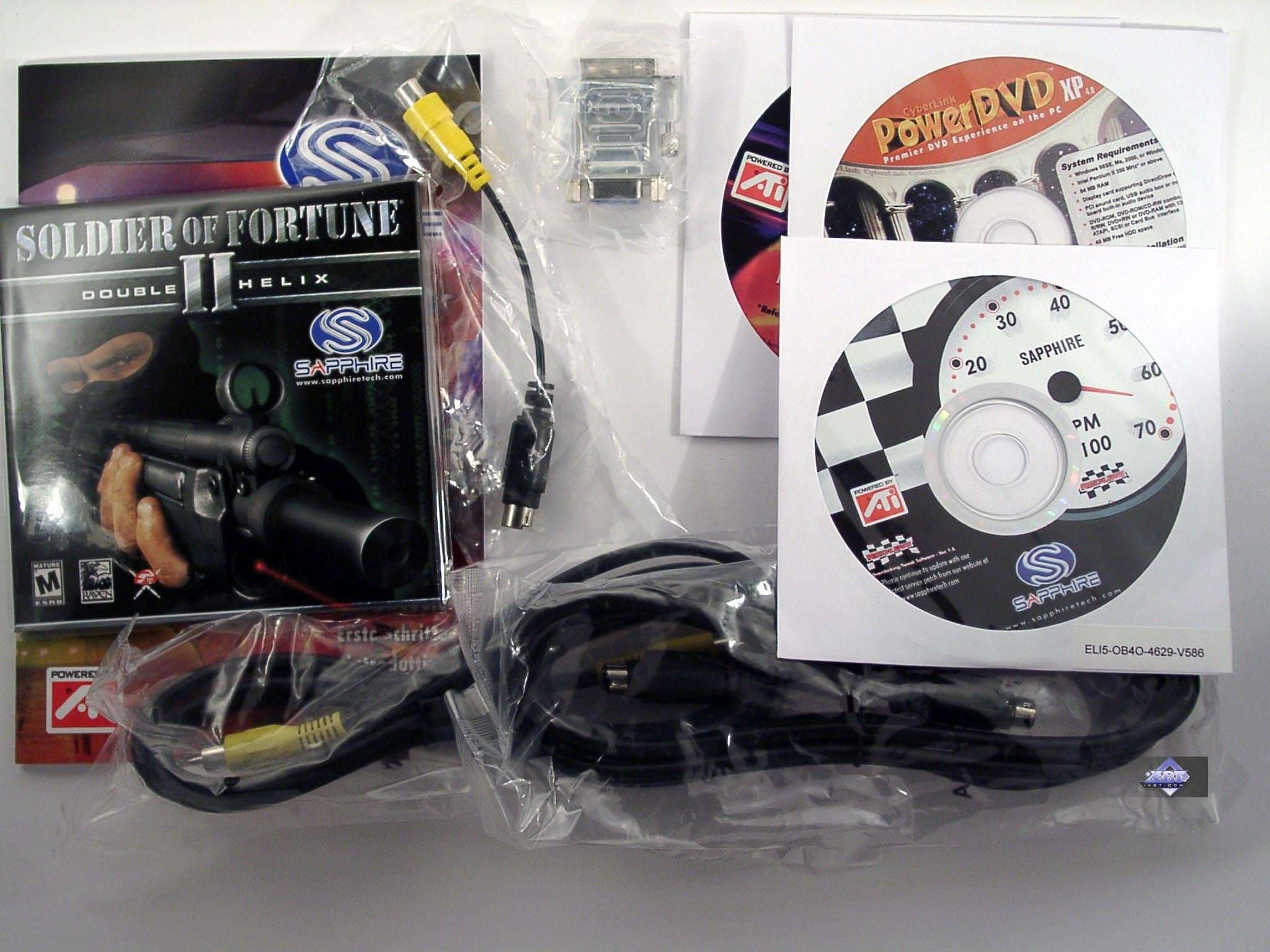 Рассмотрим комплекты поставок (Sapphire Atlantis RADEON 9600 256MB к нам попала в ОЕМ-виде, поэтому ни комплекта, ни коробки, у нее не было):