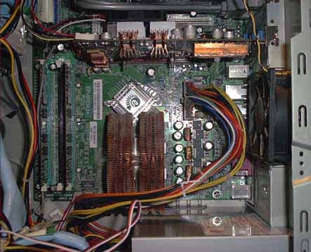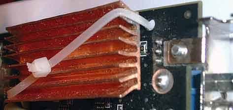 Из радиатора AVC было изготовлено (путем распила) восемь меньших радиаторов, каждый чуть превышал по размеру микросхемы видеопамяти. Оставшаяся часть медного радиатора была использована в качестве охлаждения для стабилизатора питания видеопроцессора.