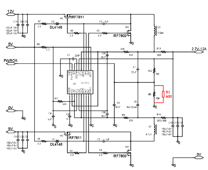 Безопасные пределы повышения напряжения составляют 10 30% от номинального значения. Стандартное напряжение питания в большинстве случаев составляет 1,5В. За стабилизацию и регулировку этого напряжения отвечает сдвоенный синхронный контроллер постоянного напряжения малой мощности с совмещенными цепями токов SC1175 производства компании ![]()