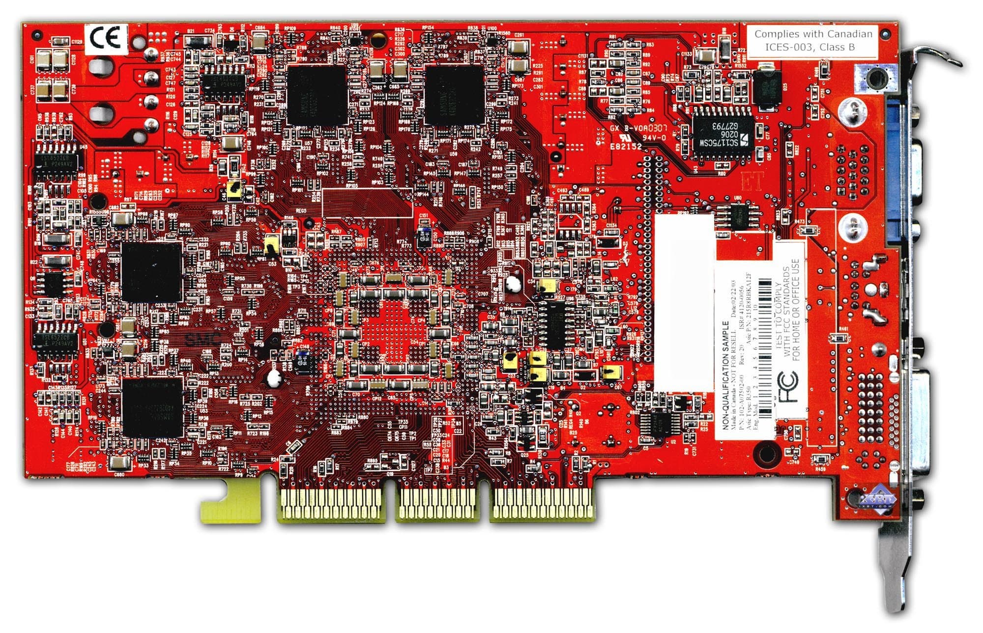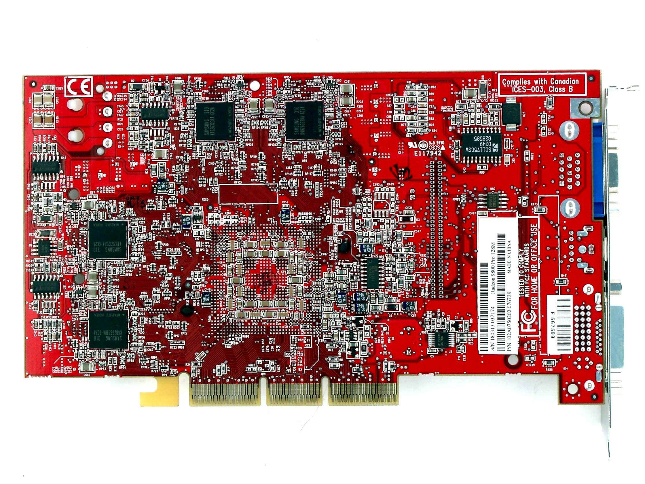 | Карта имеет интерфейс AGP x8/x4/x2, 128 МБ памяти DDR SDRAM, размещенной в 8-ми микросхемах на лицевой и оборотной сторонах PCB. Микросхемы памяти производства Samsung (BGA). Время выборки у микросхем памяти 2.8 ns, что соответствует частоте работы примерно 350 (700) МГц, память работает на частоте 340 (680) МГц. Частота работы GPU 380 MHz, шина обмена с памятью 256бит. | ![]() |