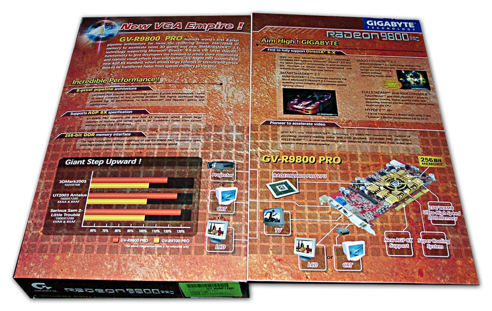 Итак, перед нами представители трех компаний, две из которых с Тайваня, а одна европейская. Полагаю, что представлять Gigabyte нет смысла, это уже давно получившая супер-популярность в россии фирма. CP.Technology нам известна по торговой марке PowerColor. Последний год-полтора свои основные усилия компания прикладывает к выпуску продуктов на базе процессоров от ATI, поэтому и в выпуске RADEON 9800 PRO она не осталась в стороне.