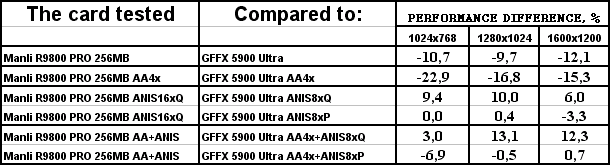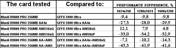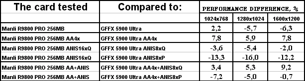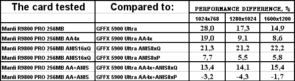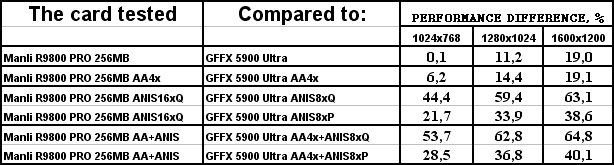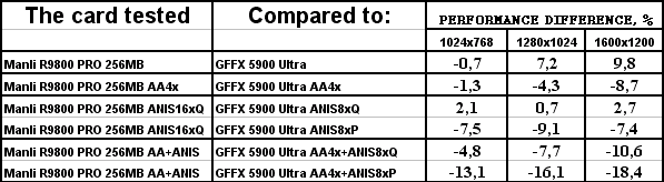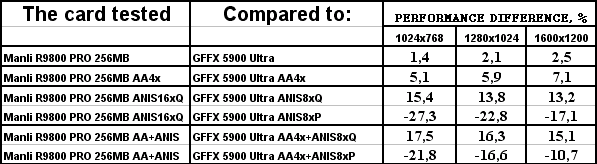 | Manli RADEON 9800 PRO 256MB | Reference card ATI RADEON 9800 PRO 256MB |