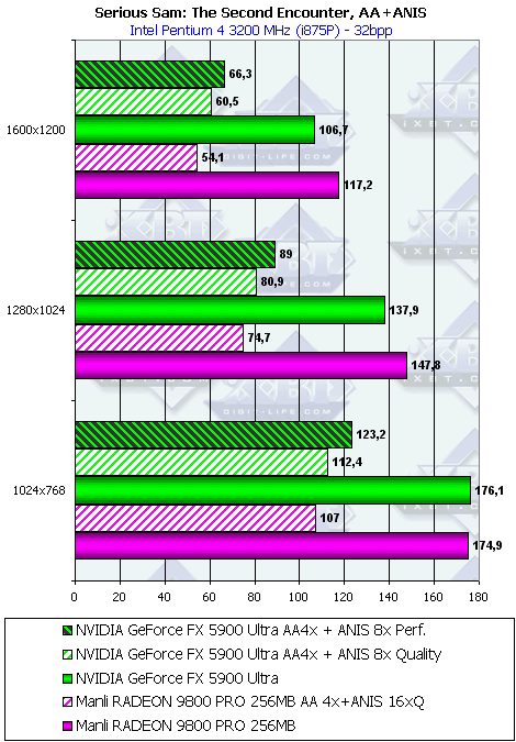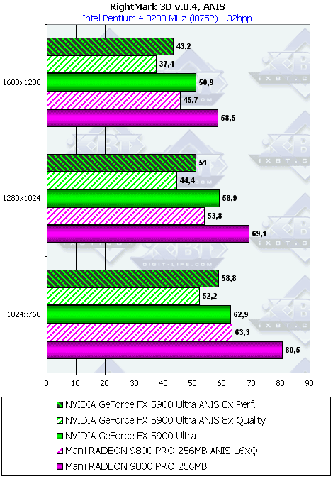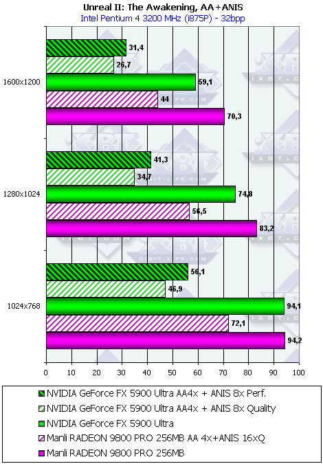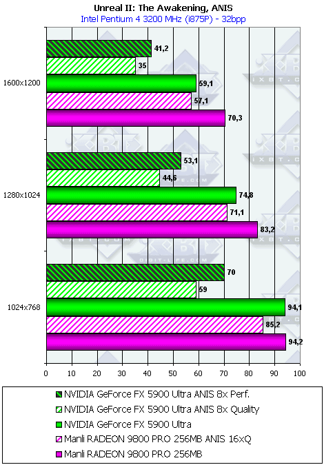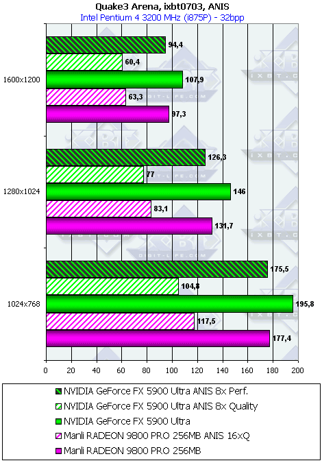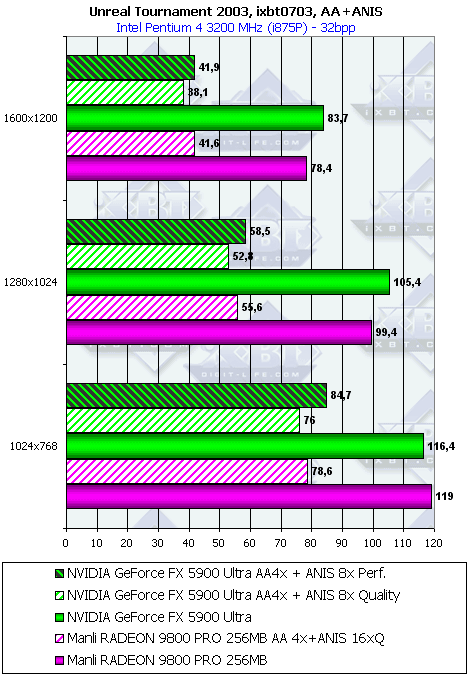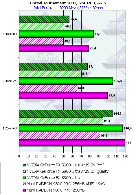 Только установка самых качественных установок анизотропии дает выигрыш продукту от ATI, однако не надо забывать, что при этом у GeForce FX 5900 качество выше из-за особенностей реализации этой функции.