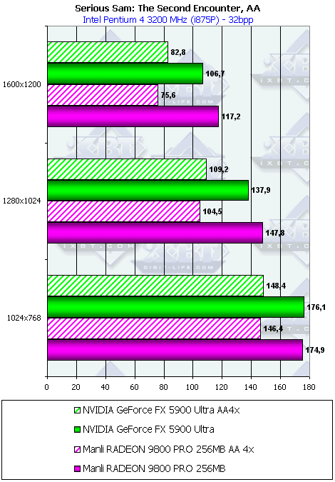 Здесь уже ситуация для RADEON 9800 получше. В целом, конкуренты почти равны.