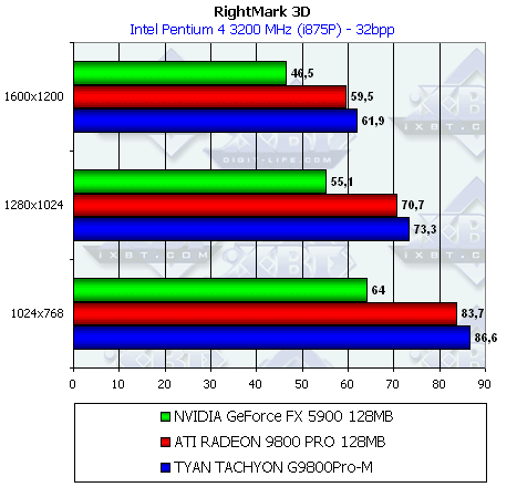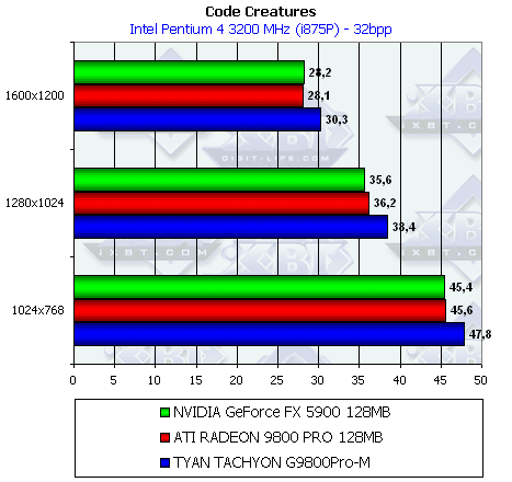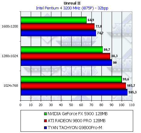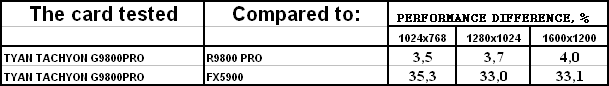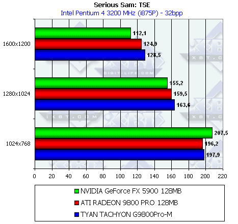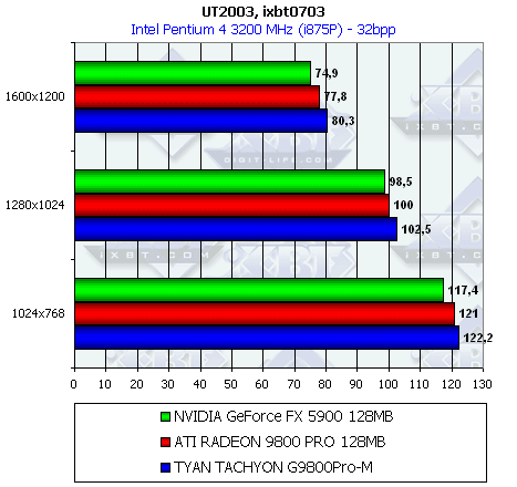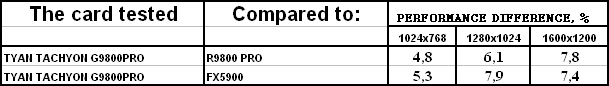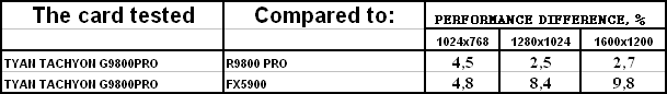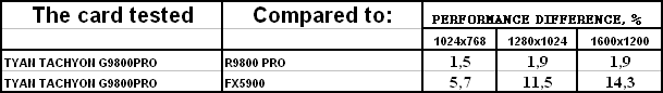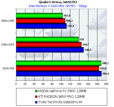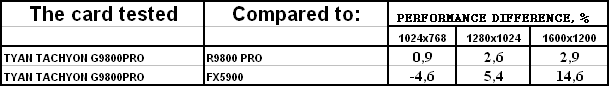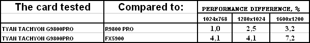 Сразу же отмечу, что из-за малой разницы между рядовым RADEON 9800 PRO и картой от TYAN нет смысла тестировать во всех режимах (АА и анизотропия), поэтому мы покажем лишь отличия в обычном режиме.