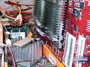 Очень хорошо, что радиаторы расположены относительно высоко на плате, и потом есть гарантия, что даже близко расположенные от AGP-слота кулеры северного моста не станут помехой для установки такой видеокарты.