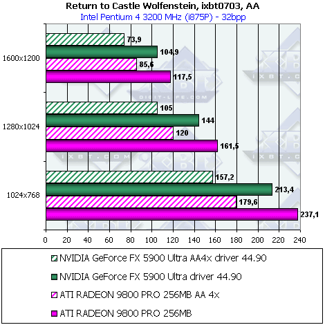 - Return to Castle Wolfenstein (MultiPlayer) (id Software/Activision) OpenGL, мультитекстурирование, ixbt0703-demo, настройки тестирования все на максимально возможном уровне, S3TC OFF, конфигурации можно скачать тут