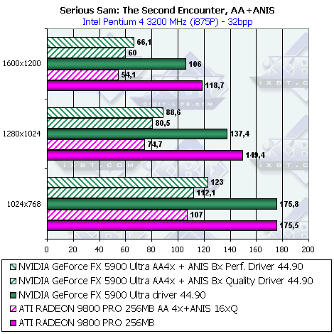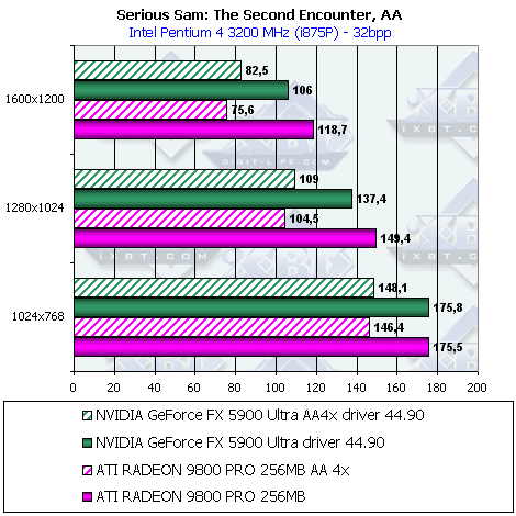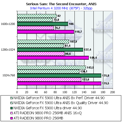 Что касается скоростей, то тут у RADEON 9800 все волшебно и шоколадно. Заточек под эту игру со стороны NVIDIA нет, о чем мы уже говорили выше.