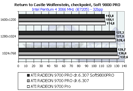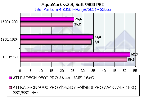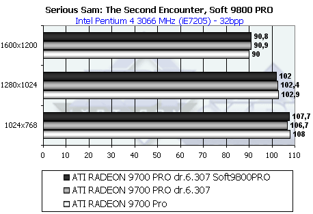 Но при этом мы наблюдаем, что драйверы от ATI просто отлично заточены под RADEON 9800 PRO, что дало Soft9800 PRO получить превосходство почти в 25% над RADEON 9700 PRO на его же частотах.