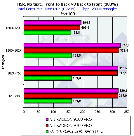 Оптимизация драйверов под RADEON 9800 PRO есть, однако, видимо, программисты в данном случае не считали этот тест уж очень важным и не очень старались :-)