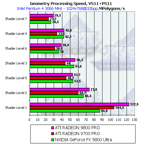 Однако снова мы получаем подтверждение, что RADEON 9800 PRO это другой продукт, нежели просто улучшенный RADEON 9700 PRO.