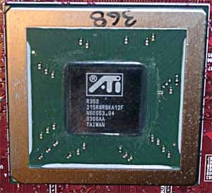 Раз мы сняли кулер, то можно оценить и размер кристалла. Он примерно такого же размера, как и R300, но зато имеет несколько иную подложку, придающую ему зеркальность. Упаковка кристалла такая же FCPGA.