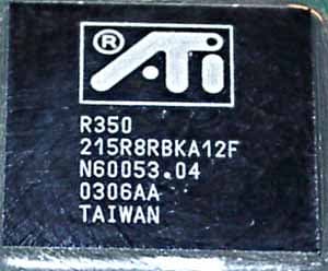 - Каких либо существенных архитектурных отличий не обнаружено. Можно относиться к R350 как к R300 с увеличенной тактовой частотой ядра, усиленной оптимизацией работы с двусторонним буфером шаблонов, которая возможно даст о себе знать в DOOM III и играх на его основе и потенциальным наличием аппаратной поддержки для F-буфера и длинных пиксельных шейдеров.