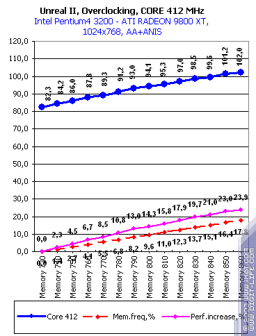 - В 1024х768 явно наличествует упирание в частоту центрального процессора (и в систему в целом), поэтому прирост без АА и анизотропии был мал.