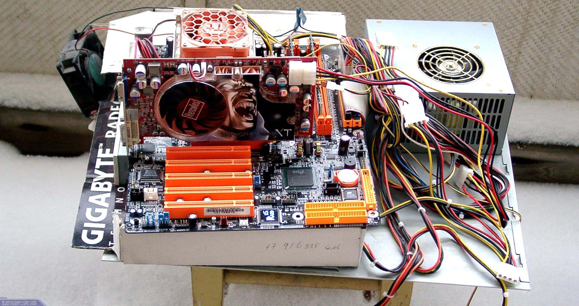 Традиционно зимние серии экстремальных разгонов мы проводим на балконе при отрицательной температуре воздуха на улице. В этом есть и свои плюсы, и минусы в отличие от разгонов в морозильной камере. Плюсы в том, что не надо готовить камеру, и не думать, как уложить в ней все так, чтобы длины кабелей хватило для размещения монитора. Минусы в том, что надо думать, как уложить все то же самое около балконной двери так, чтобы уместились не только монитор, но и тестер. А также есть проблема замерзания ведущего тестирование, поскольку балконная дверь все же приоткрыта :)