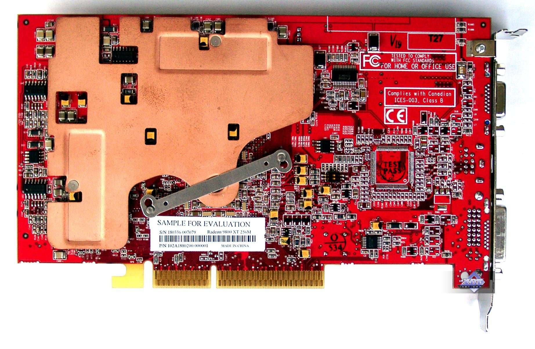 RADEON 9800 XT имеет частоты 412/365 (730) МГц и снабжена 256 мегабайтами DDR памяти. При этом изменена сама карта, используются укрупненные 256-мегабитные микросхемы памяти, вследствие чего их не 16 штук, а 8. Впрочем, ниже мы это все еще рассмотрим.