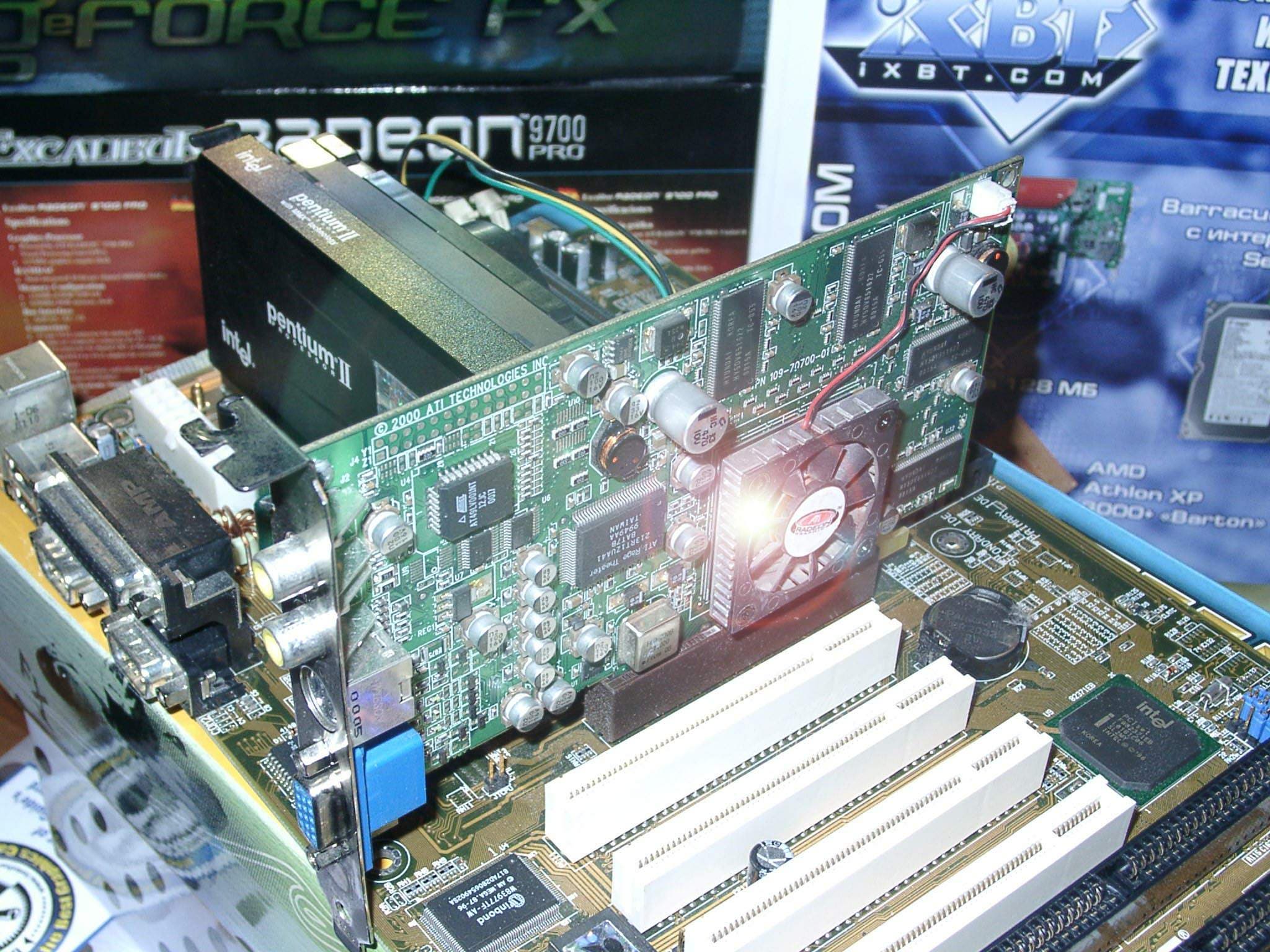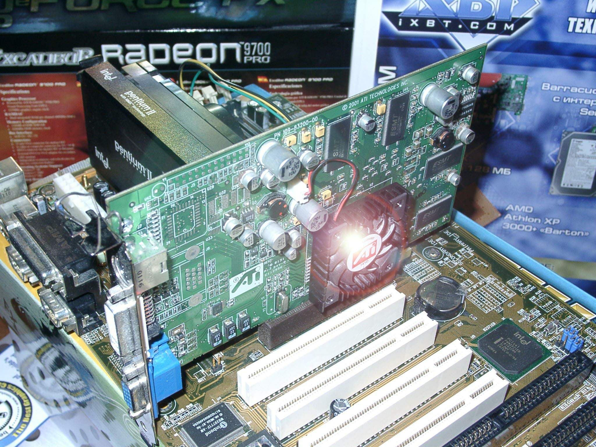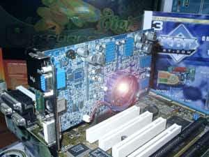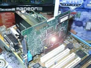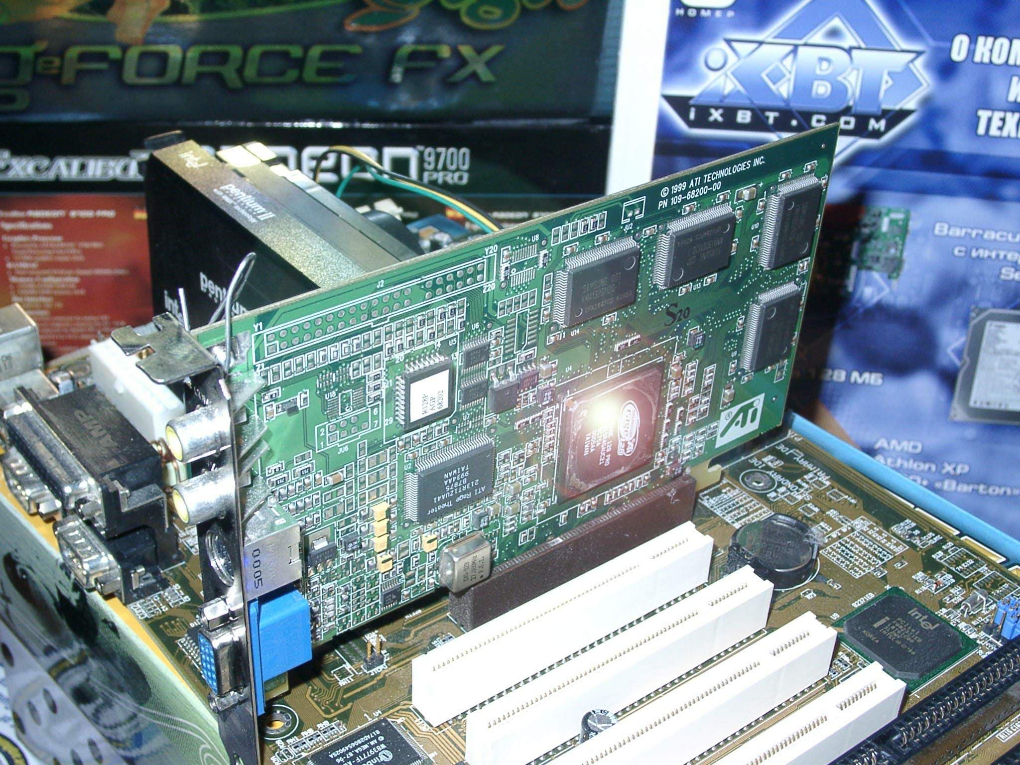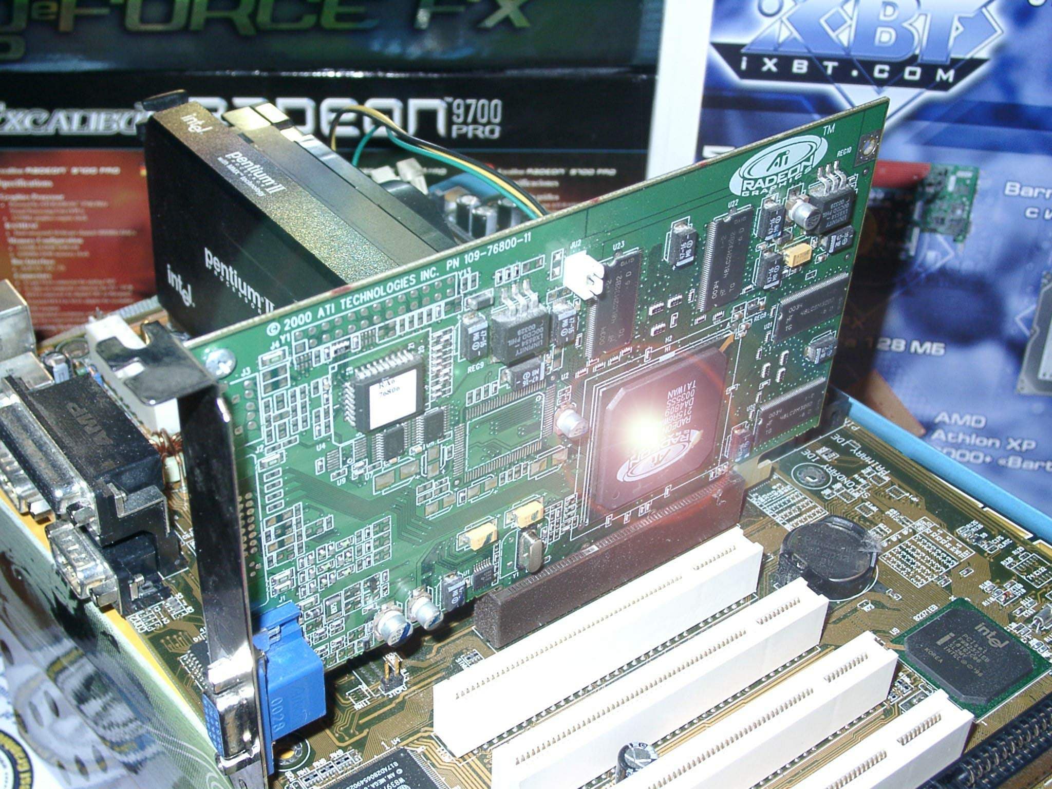 Этот продукт представляет собой фактически переименование RADEON 8500LE в 9100, поэтому у нее процессор излучает "свет", ибо RADEON 8500LE были очень популярны. Карта от ATI.
