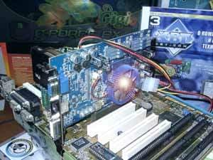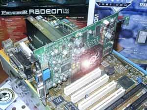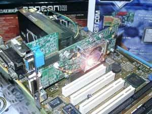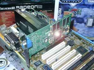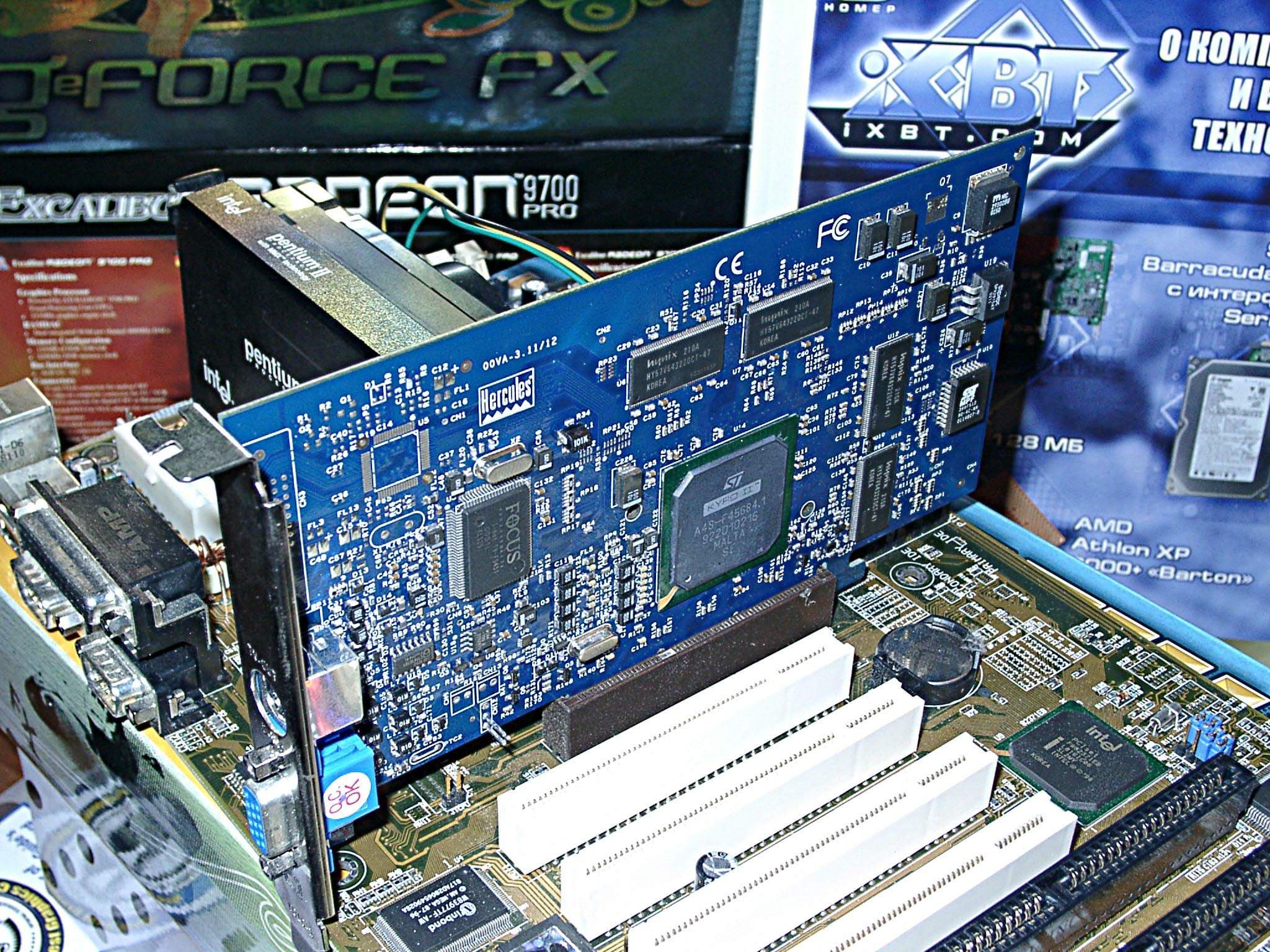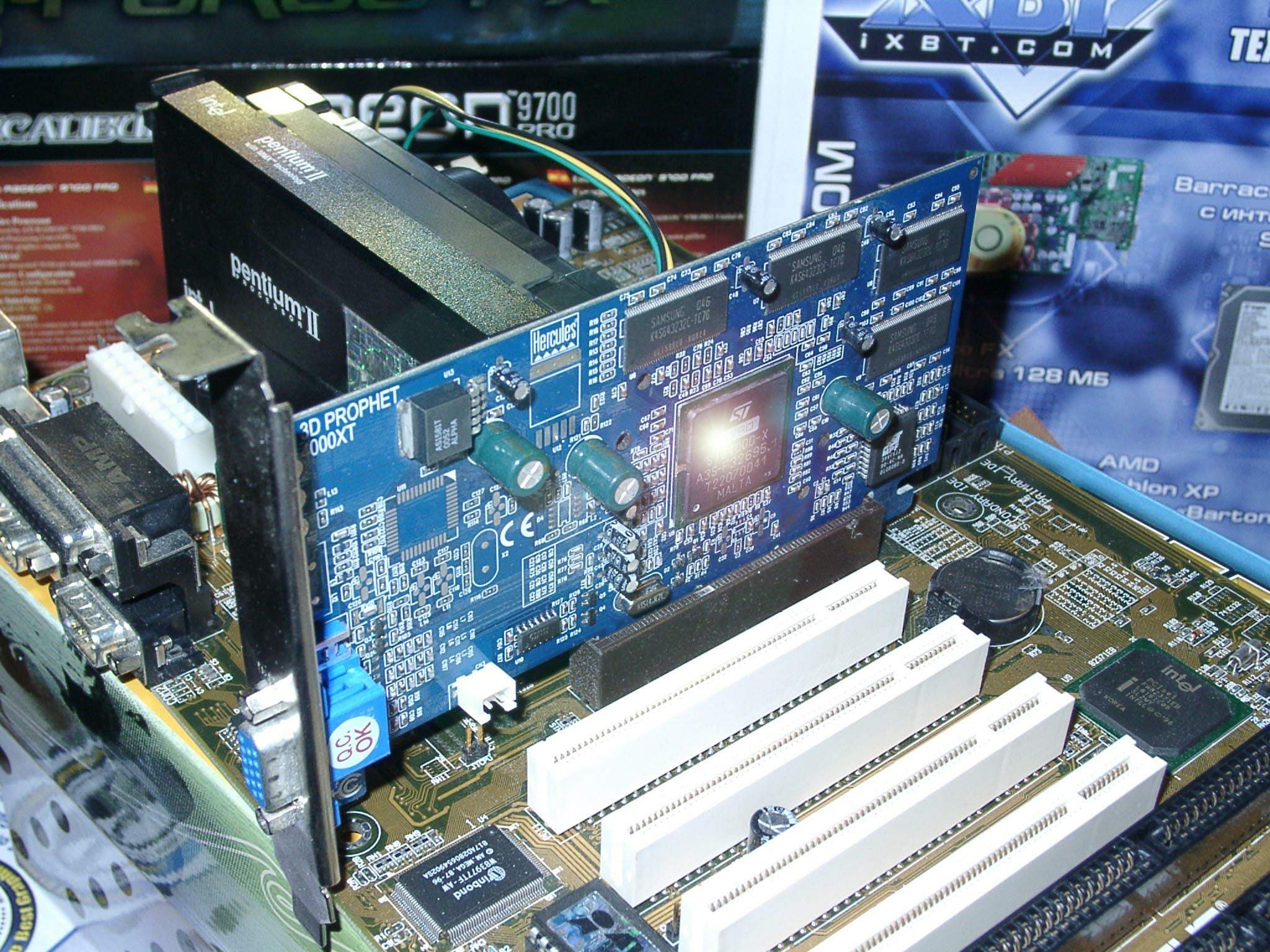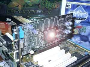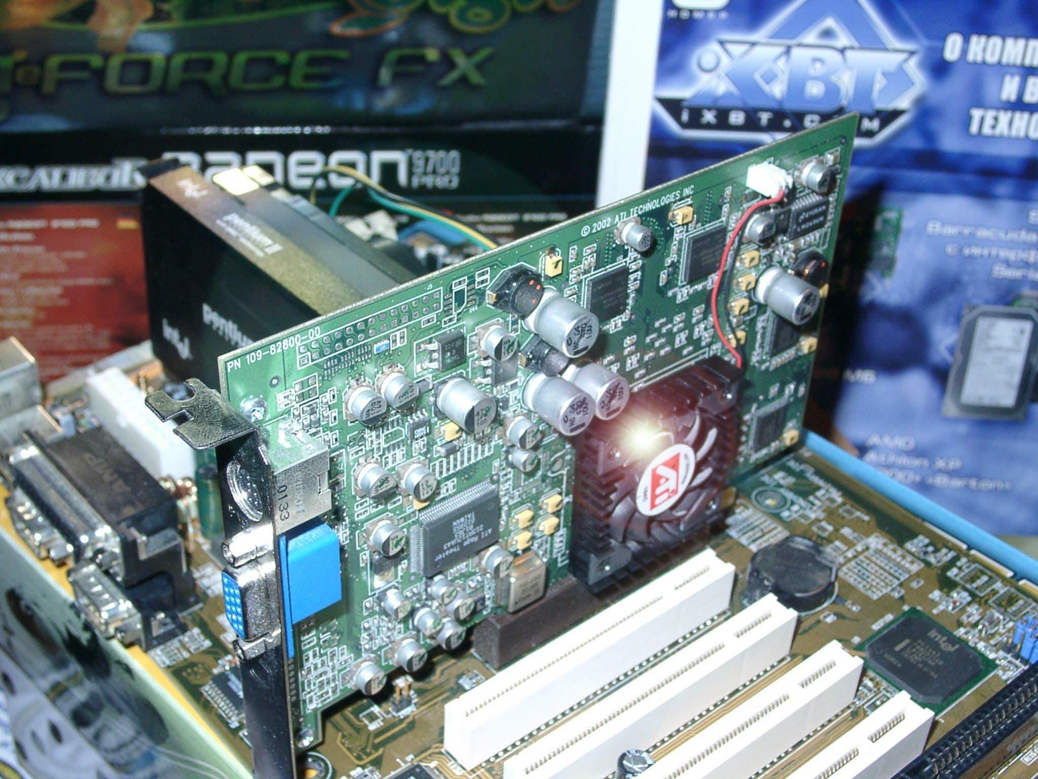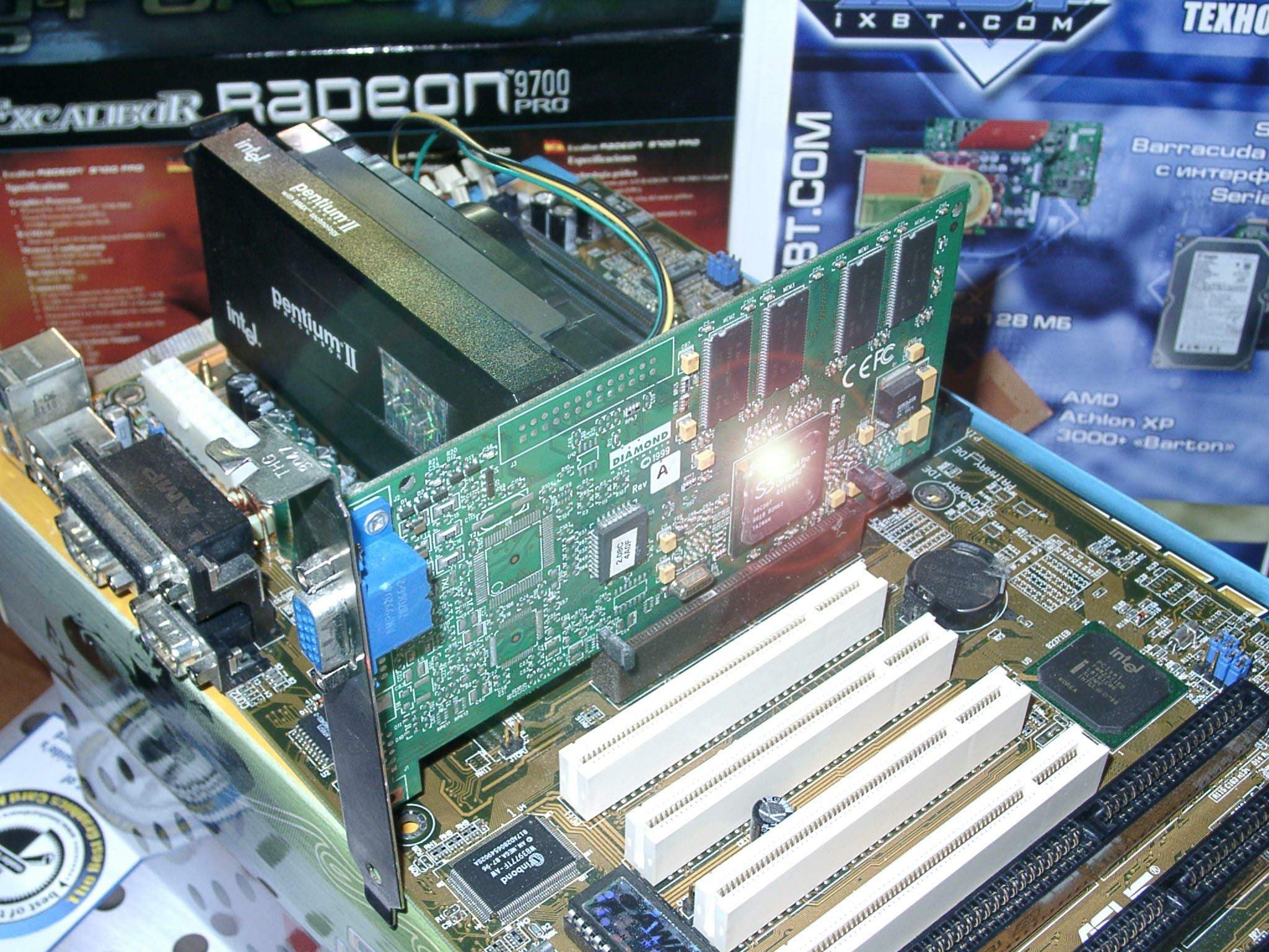 Этот продукт представляет собой фактически переименование RADEON 8500LE в 9100, поэтому у нее процессор излучает "свет", ибо RADEON 8500LE были очень популярны. Карта от ATI.