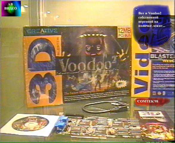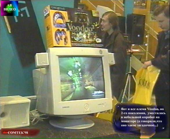 Апрель 1998 года. Фанфары по выходу этого мощнейшего ускорителя! Массовое появление в ларьках CD-дисков игр со знаменитым логотипом 3Dfx. Тяжелые вздохи при виде цены в $350 за 12-мегабайтную карту… Потоки слюны зависти при посещении Comtek'98 (вот несколько кадров оттуда):