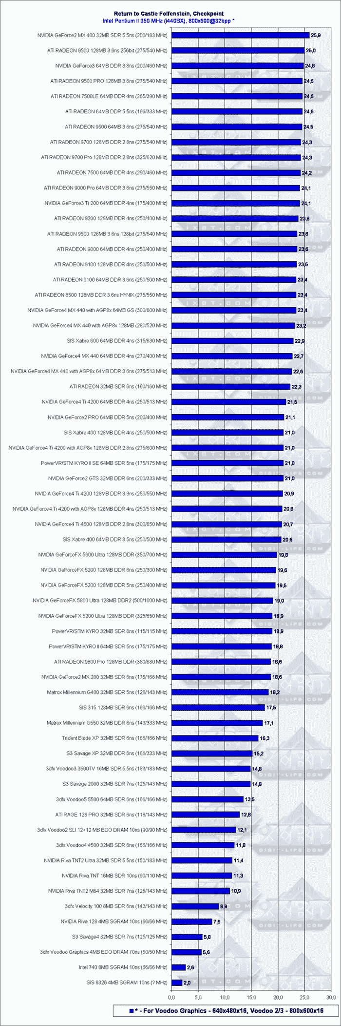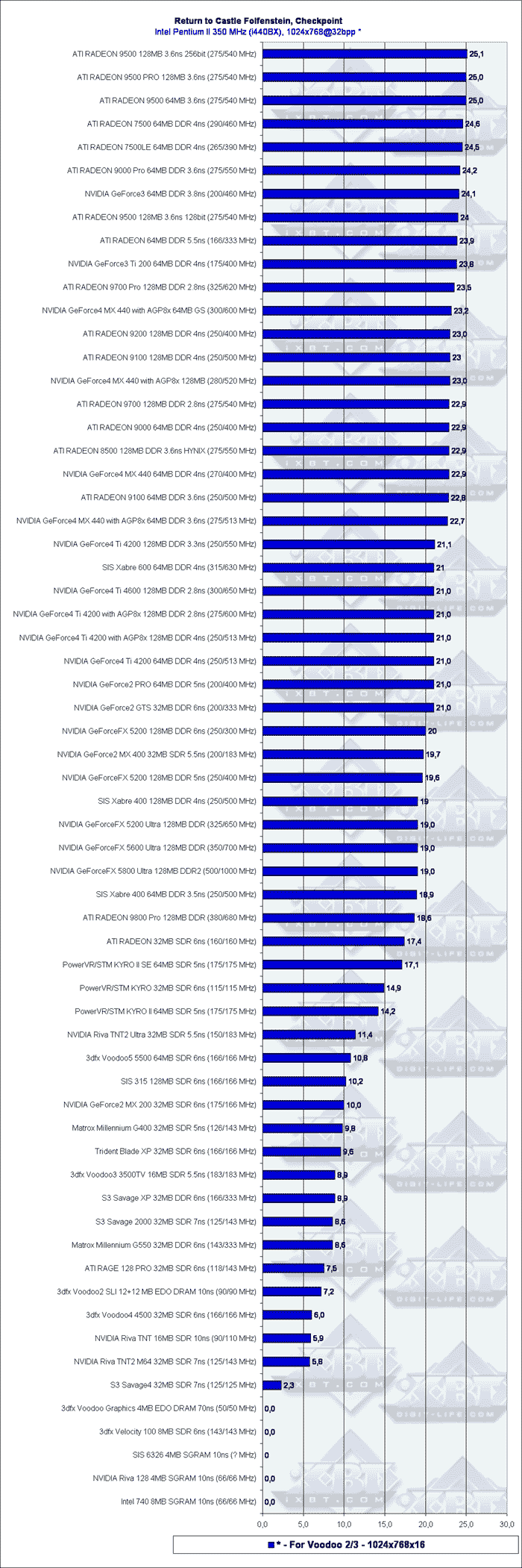 - Return to Castle Wolfenstein (MultiPlayer) (id Software/Activision) OpenGL, мультитекстурирование, Checkpoint-demo, настройки тестирования все на максимально возможном уровне, S3TC OFF, конфигурации можно скачать тут