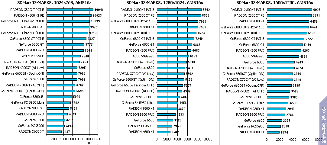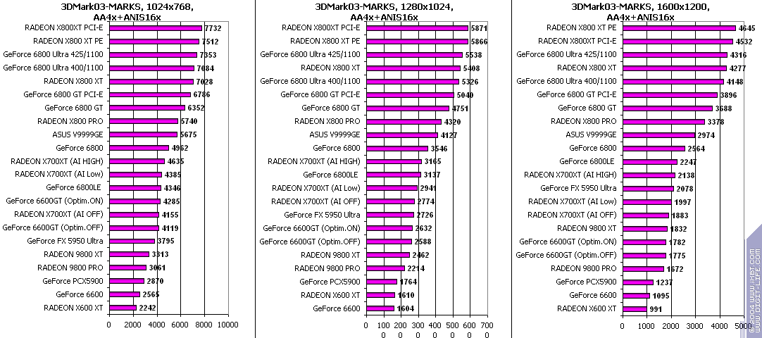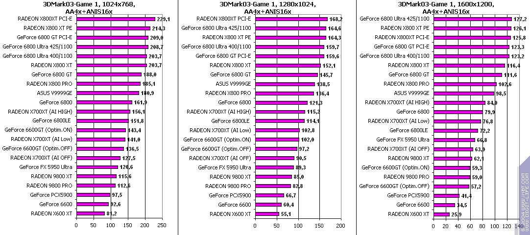 И, как итог, после сильного влияни предыдущего теста — почти везде победа у X700XT. Причем, оптимизации (A.I.) дают приличный прирост.