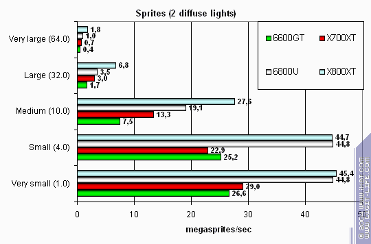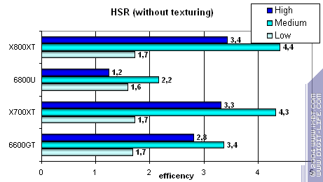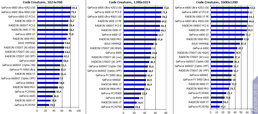 ЗДЕСЬ ДАЖЕ НЕЧЕГО РАССМАТРИВАТЬ раздельно! Полный провал X700XT по всем статьям! Очевидно, что игра не «поняла» новую карту (проверялось как на патче 1.1, так и на 1.2), и чего-то у нее не активизировалось, отсюда такое неслыханное просто поражение!