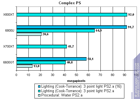 Самые легкие режимы без АА и анизотропии: легкое поражение сопернику, здесь роль играет уже чистая скорость шейдеров, а она в пересчете на частоту ядра, у 6600GT чуть выше.