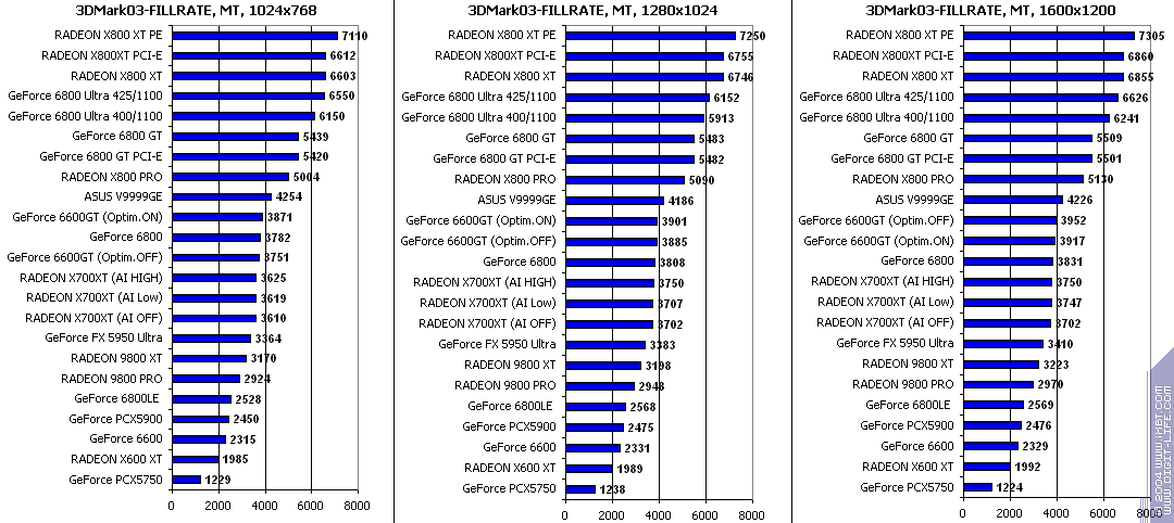 - Синтетические тесты в 3DMark03: FillRate Multitexturing