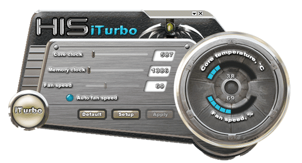Я особо еще раз отмечу, что карта снабжается утилитой iTurbo, которая способна нажатием одной кнопки перевести частоты со штатных 590/1380 МГц на чуть более высокие - 600/1400 МГц (странно, что разработчики не решились на более высокий разгон). Хотя той же утилитой можно успешно разогнать карту и до 630/1500 MHz! (на ниже представленном анимированном скриншоте с этой утилиты представлены все три частоты работы: номинал, iTurbo и максимальный разгон, который удался на данном экземпляре).