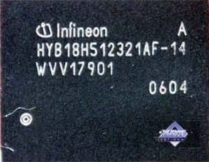 | Карта имеет 256 МБ памяти GDDR3 SDRAM, размещенной в 4-х микросхемах на лицевой cтороне PCB. Микросхемы памяти Infineon (GDDR3). Время выборки у микросхем памяти 1.4 ns, что соответствует частоте работы 700 (1400) МГц. | ![]() |