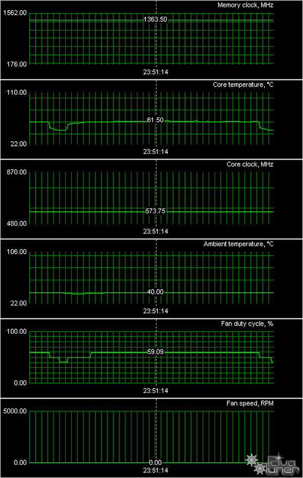 Мы изучили мониторинг карты от GeCube с помощью широко известного RivaTuner (автор А. Николайчук AKA Unwinder):