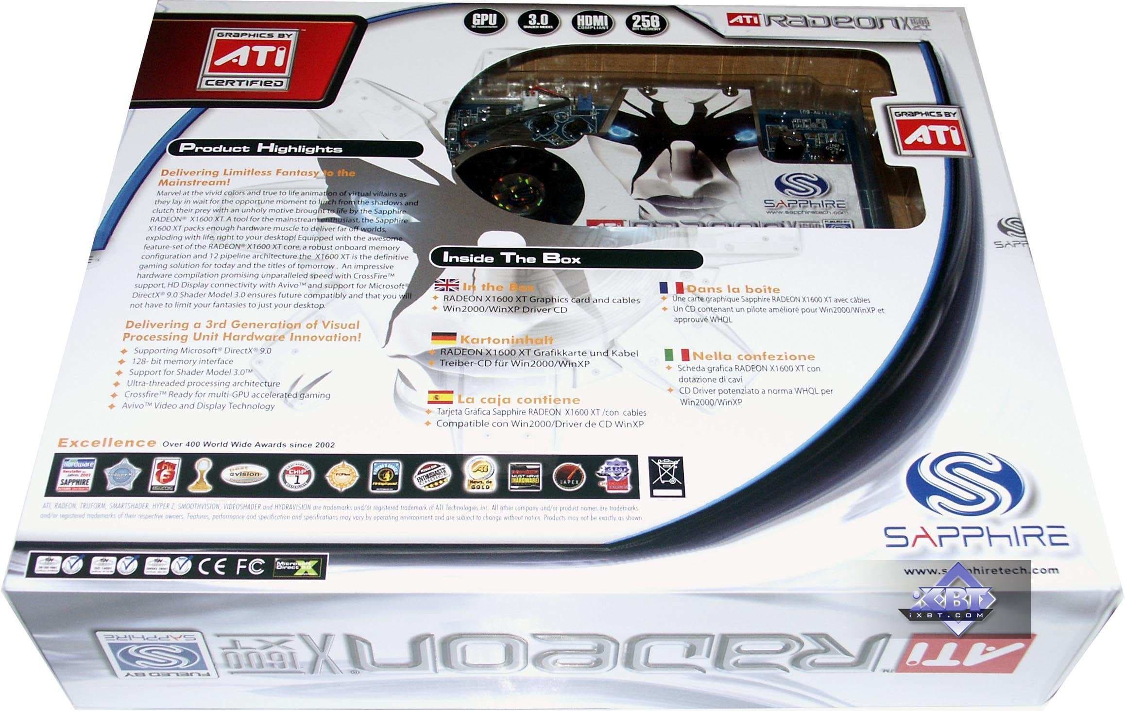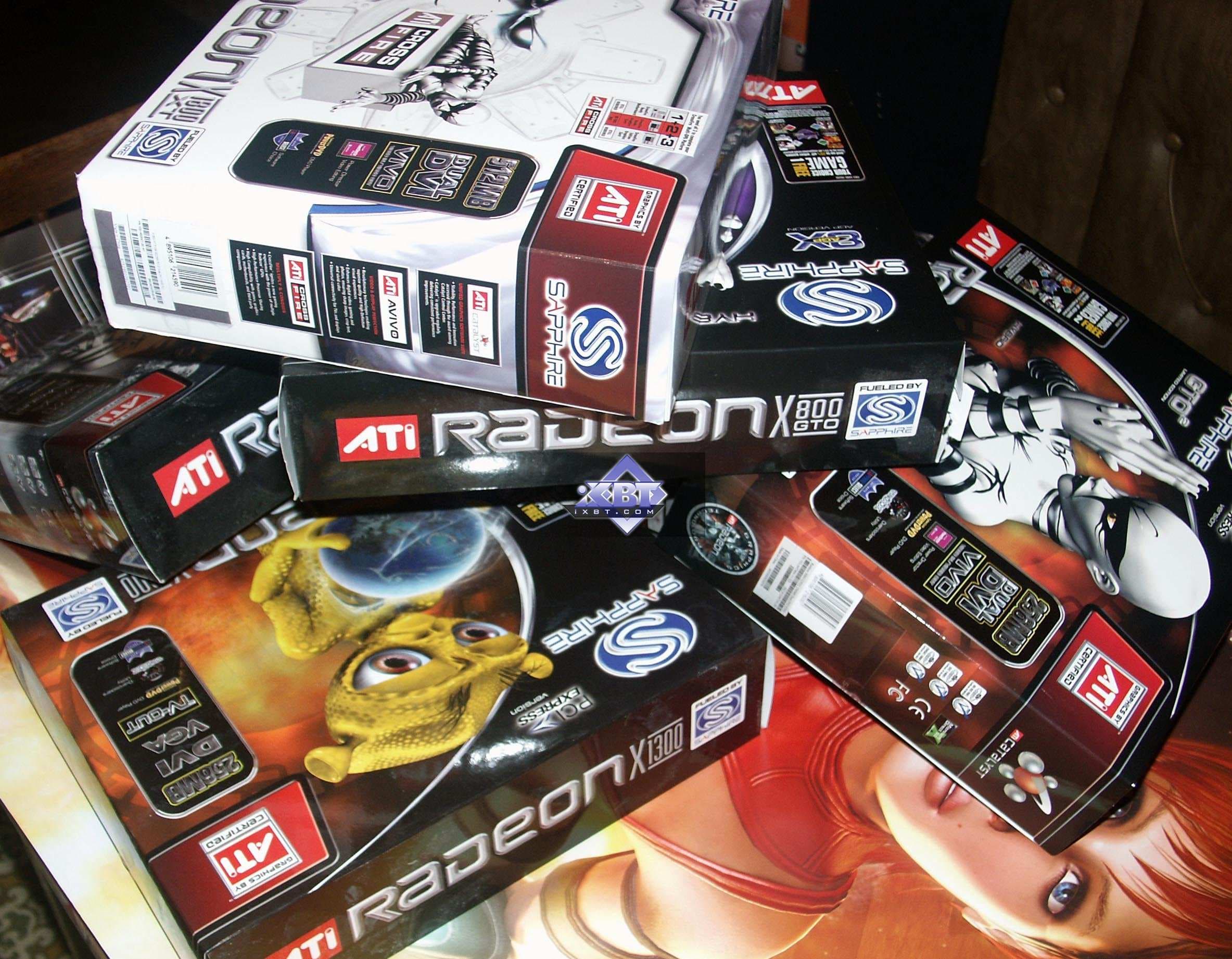 Итак, фотографии явно показывают то, что все видеокарты базируются на соответстствующих эталонных дизайнах. Очевидно, что X800GT/GTO/GTO2 имеют в своей основе ту же PCB, что и X800 XT/X850 XT. Что касается серии X1xxx, то X1300 и X1600 XT произведены самостоятельно компанией Sapphire, и также копируют reference. А вот X1800 XL, X1800 XT — это просто эталонные карты, купленные у ATI. Заслуга всех партнеров, продающих такие изделия лишь в наклеивании своих стикеров и наклеек, упаковке в свои коробки, ну и продаже по своим каналам.