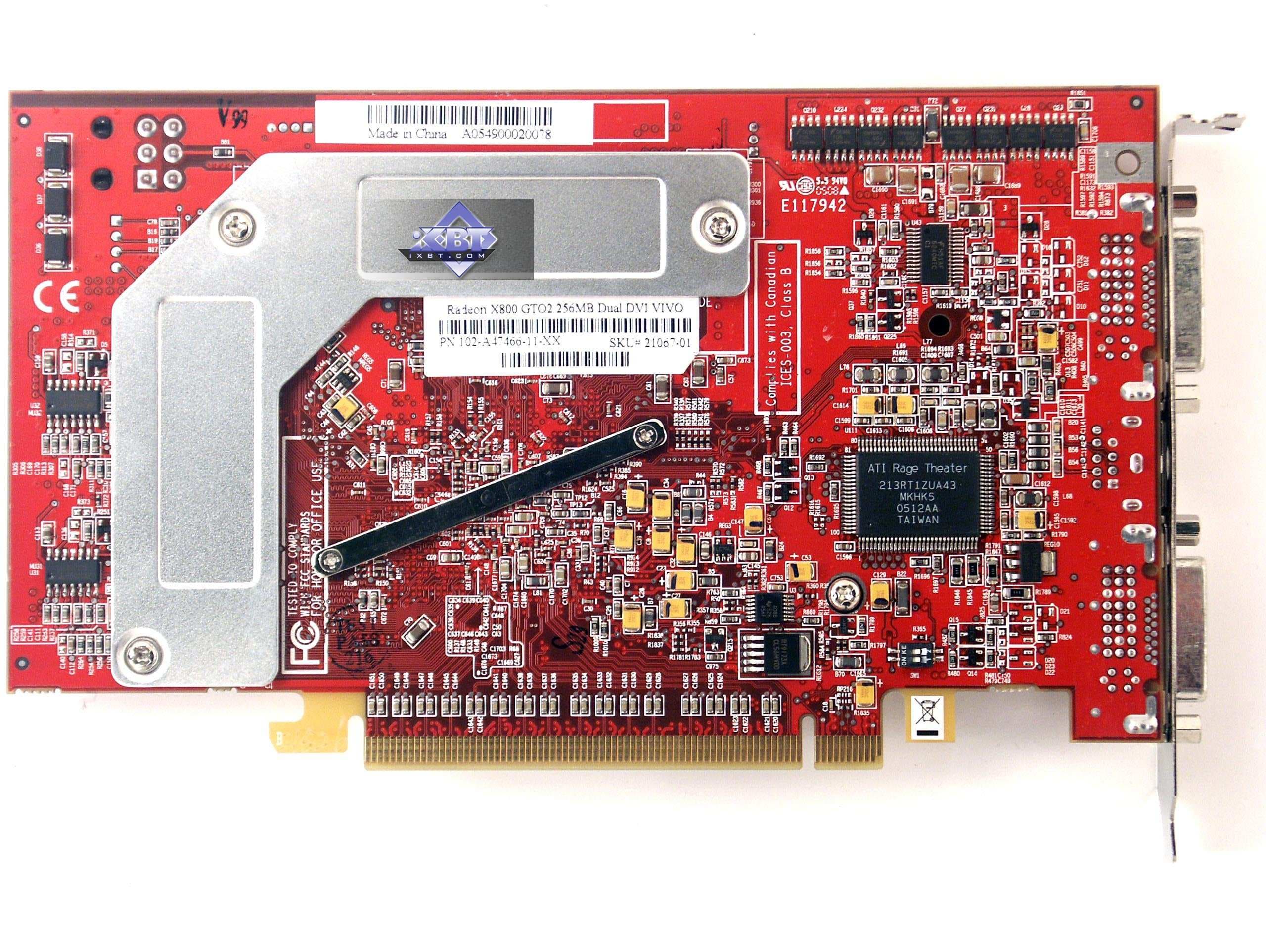 Еще одна интересная видеокарта из прежнего семейства X800 — это X800GTO2 с интерфейсом PCI-E. Как известно, суффикс GTO2 обозначает, что это тот же самый X800GTO, но с гарантированной возможностью разблокирования конвейеров до уровня X850 (16 пиксельных и 6 вершинных). В нашем же случае была плата с УЖЕ ПОЛНОСТЬЮ РАЗБЛОКИРОВАННЫМИ КОНВЕЙЕРАМИ, и лишь частота работы была на уровне X800XL — 400/990 MHz. Однако мы-то знаем, что в таких продуктах используется ядро R480, а не R430, поэтому разгон может быть на порядок выше. Это подарок оверклокерам! Впрочем, все по порядку. Ниже мы вернемся к этому вопросу.