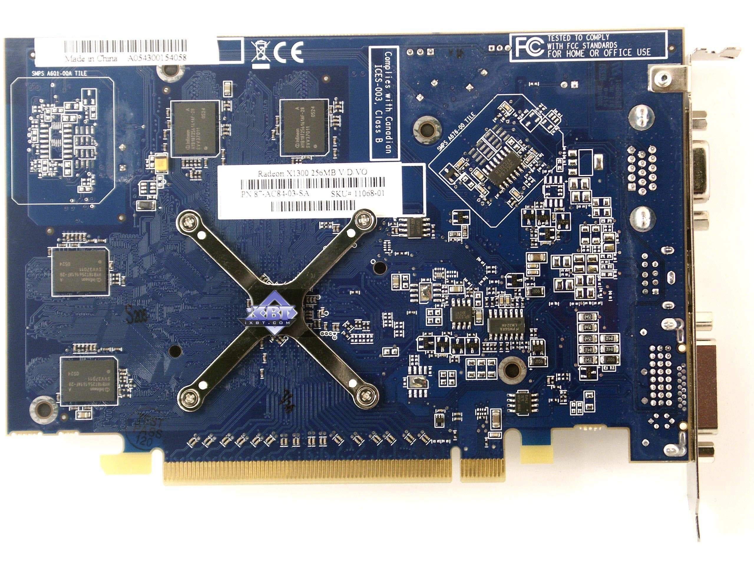 - Sapphire RADEON X1300 PCI-E 256MB — 500/800 МГц (выше невозможно, нагрев уже стал невыносим для карты);