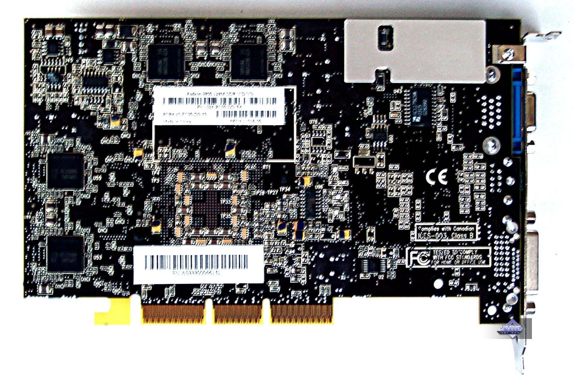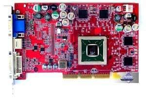 | Карта имеет интерфейс AGP x8/x4/x2, 128 МБ памяти DDR SDRAM, размещенной в 8-ми микросхемах на лицевой и оборотной сторонах PCB. Микросхемы памяти производства Samsung. Время выборки у микросхем памяти 3.3 ns, что соответствует частоте работы примерно 300 (600) МГц, память работает на частоте 290 (580) МГц. Частота работы GPU 325 MHz, шина обмена с памятью 256бит. | ![]() |