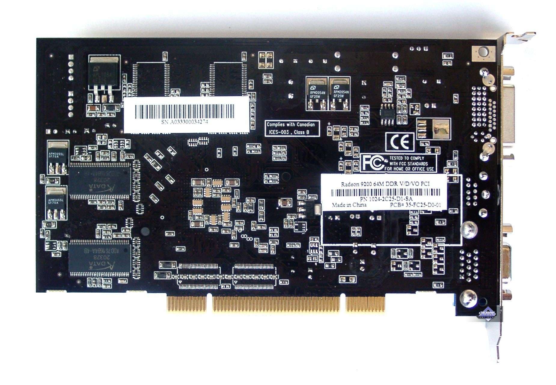 - RADEON 9200 PCI схож по дизайну с референс на RADEON 9200, 64-битная шина получена путем недокомплектации карты половиной микросхем памяти.