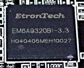 | Карта имеет интерфейс AGP x8/x4/x2, 128 МБ памяти DDR SDRAM, размещенной в 8-ми микросхемах на лицевой и оборотной сторонах PCB. Микросхемы памяти производства EtronTech. Время выборки у микросхем памяти 3,3 ns, что соответствует частоте работы 300 (600) МГц, память работает на частоте 270 (540) МГц. Частота работы GPU 325 MHz, шина обмена с памятью128бит. Обращу внимание на то, что конвейеров рендеринга4 (а не 8!). | ![]() |